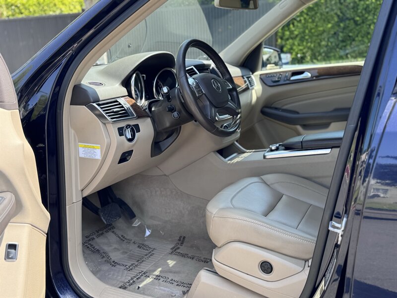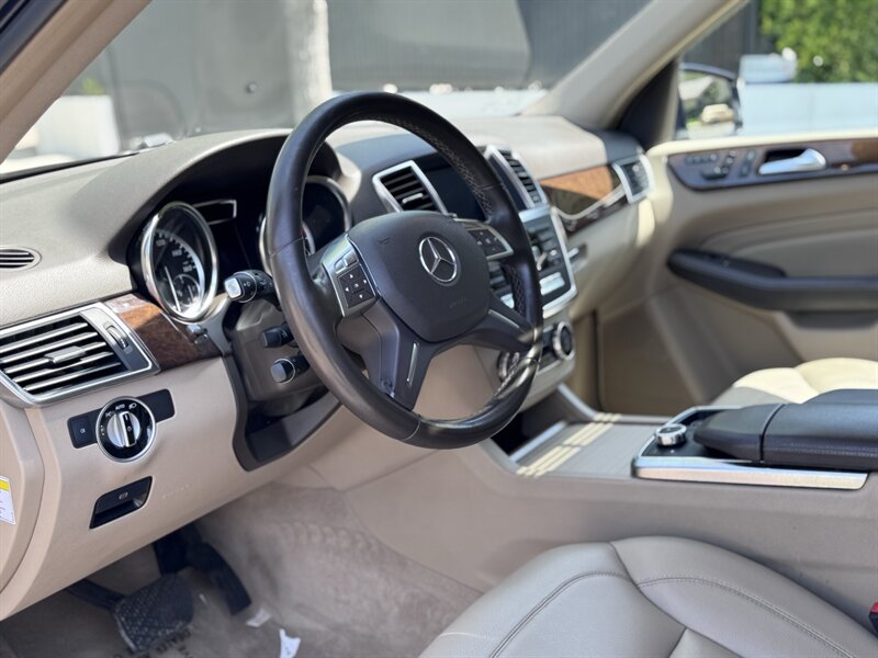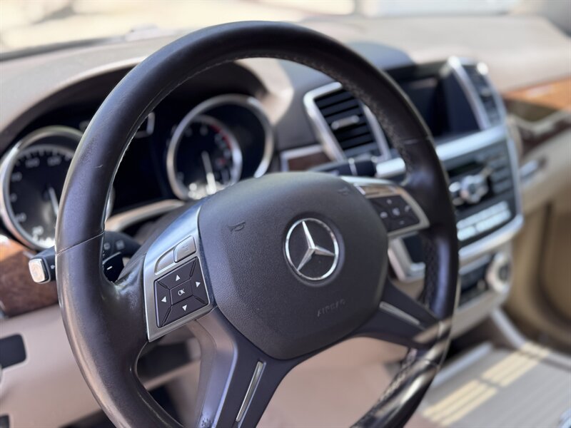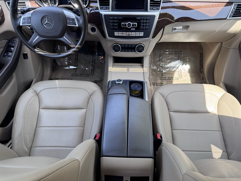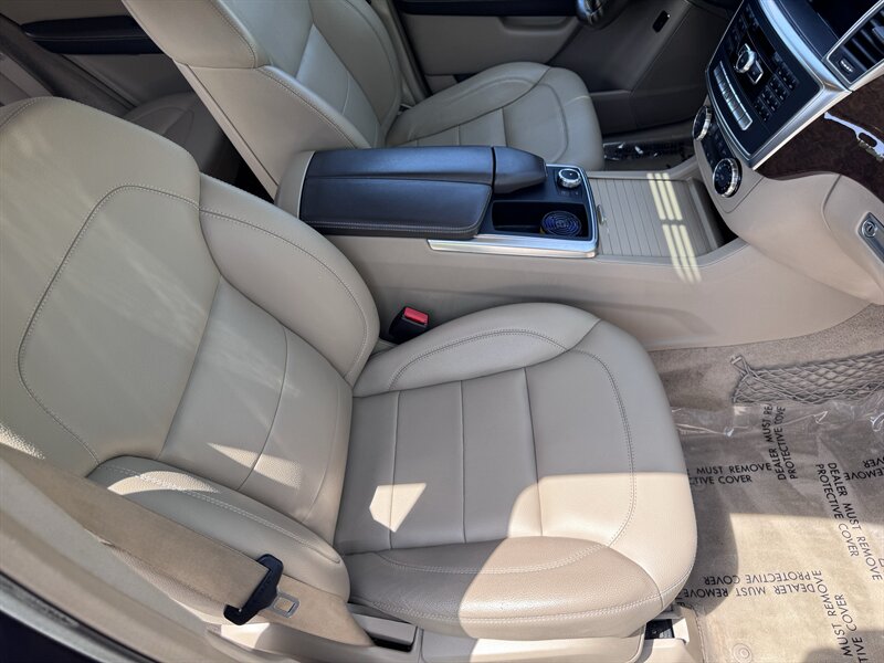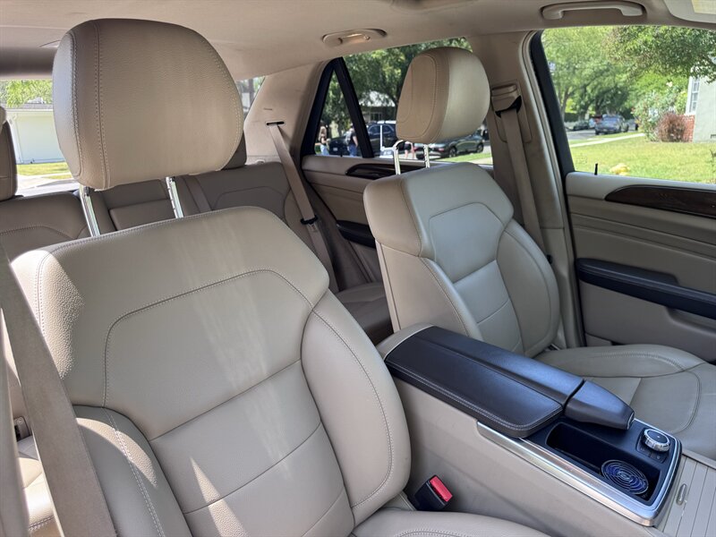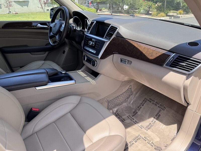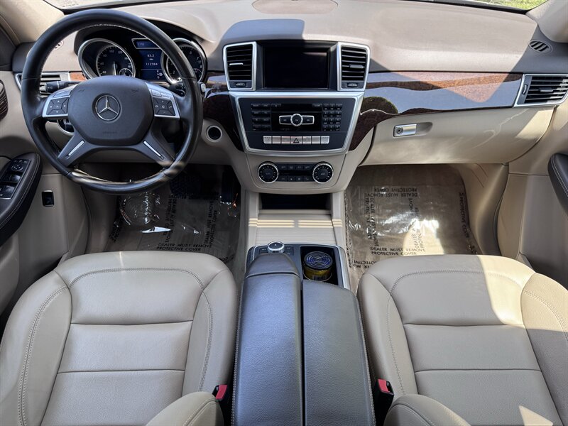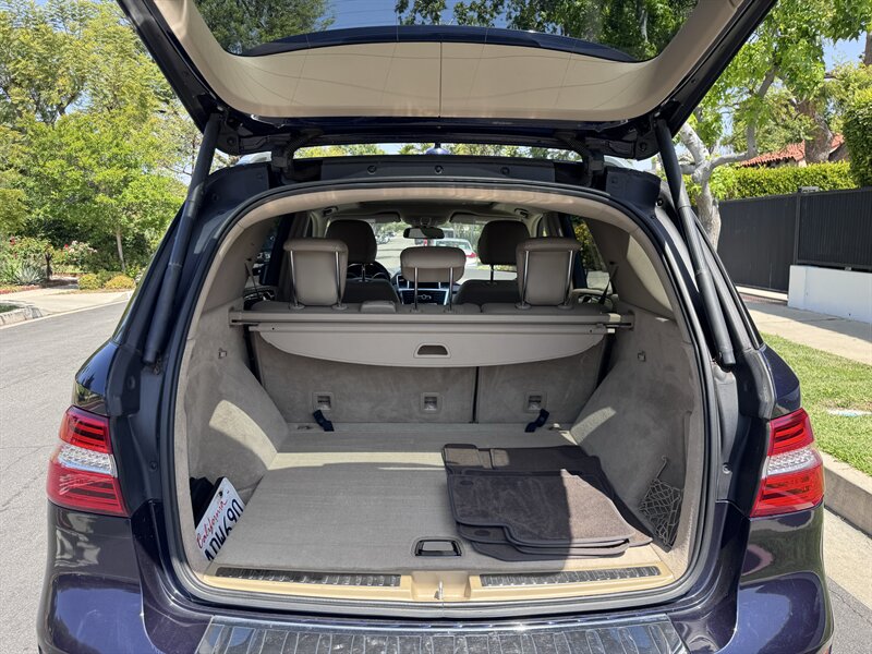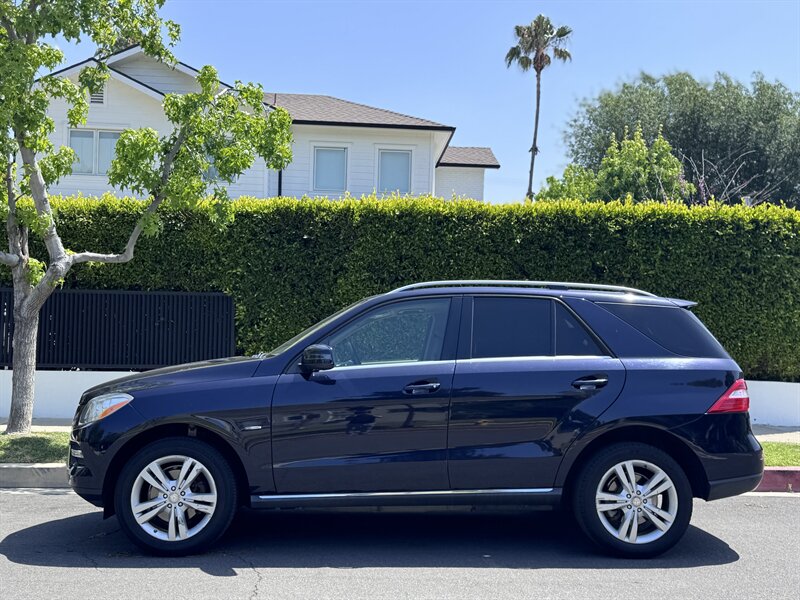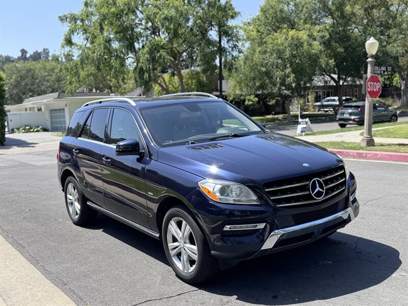 2012 Mercedes-Benz ML 350 in Capri Blue Metallic with Almond Beige interior. Powered by a 3.5L V6 producing 302 hp and 273 lb-ft, paired with a 7-speed automatic transmission. Below 113,000 miles (averaging under 8,000 miles/year) and rated at 17 MPG city / 22 MPG highway. Factory equipment includes a full complement of airbags (front, side and curtain), ABS with Brake Assist, Electronic Stability Program and traction control; power windows, locks and heated mirrors with remote keyless entry; power-adjustable front seats with driver memory; dual-zone automatic climate control; tilt/slide sunroof; steering-wheel audio and cruise controls; Bluetooth phone connectivity and audio streaming; AM/FM/CD with auxiliary input and multi-speaker sound; alloy wheels, roof rails and power liftgate. Vehicle is in excellent overall condition.