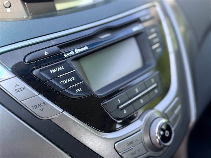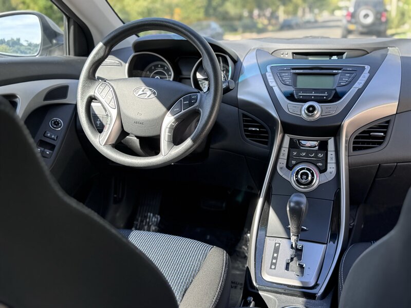 2013 Hyundai Elantra Coupe GS in Titanium Gray Metallic with a Gray interior, powered by a peppy 1.8L I4 (148 hp, 131 lb-ft). Exceptionally low mileage—under 10,000 miles total (averaging less than 1,000 miles per year)—and excellent fuel economy: 27 MPG city / 37 MPG highway. Factory equipment includes air conditioning, cloth seating with 60/40 split-folding rear seat, power windows/locks/mirrors, remote keyless entry, cruise control, tilt steering, AM/FM/CD/MP3 stereo with auxiliary and USB inputs, Bluetooth hands-free and steering-wheel audio controls, full power accessories, ABS with traction and stability control, and front/side/curtain airbags with tire pressure monitoring. This coupe is in excellent overall condition and drives like a well-cared-for daily with great efficiency.