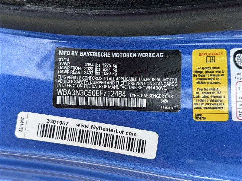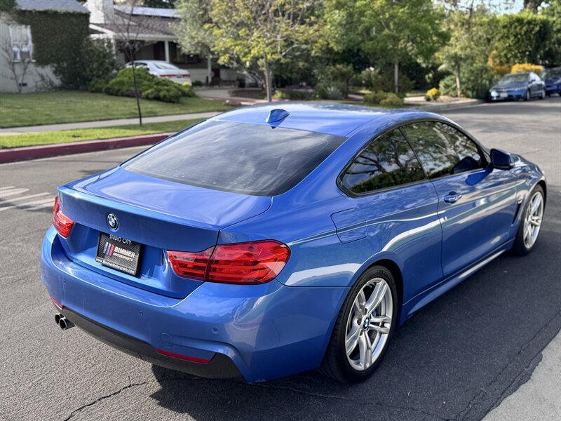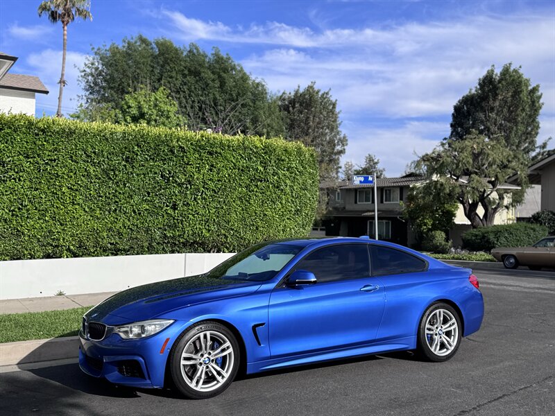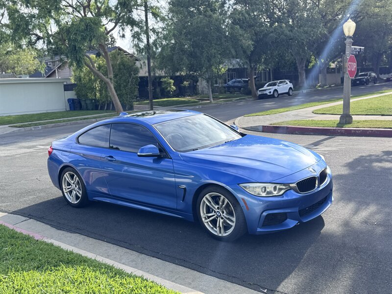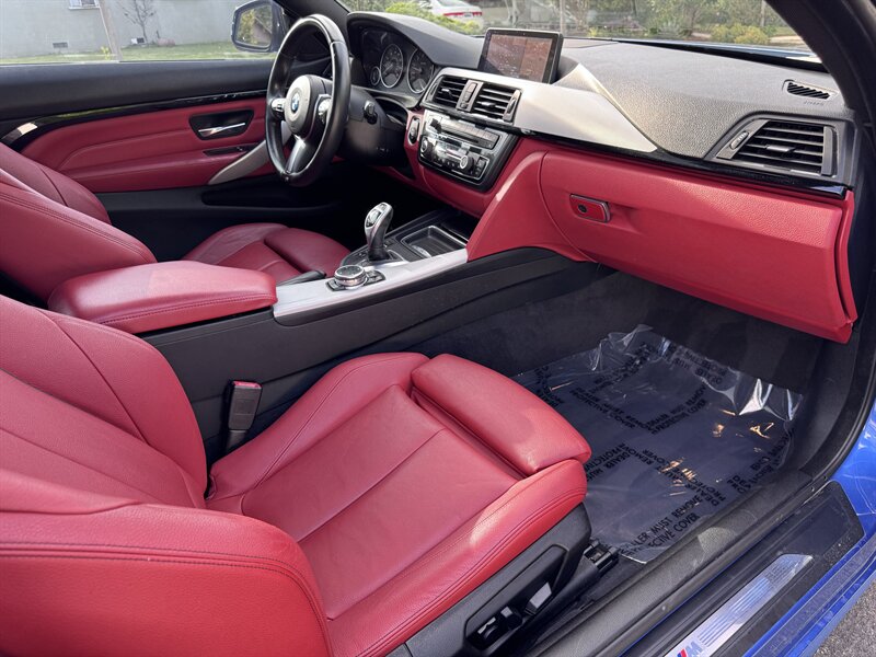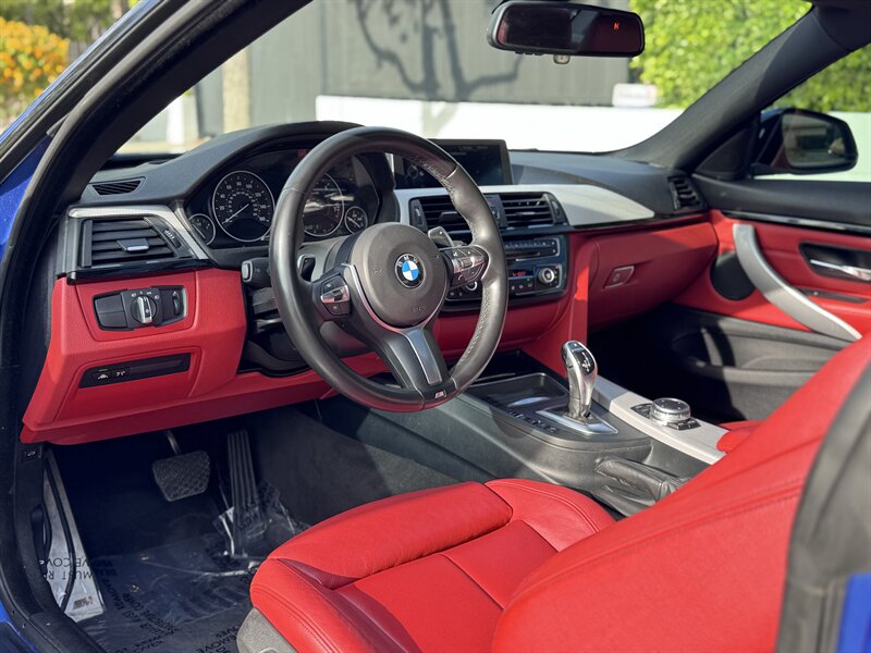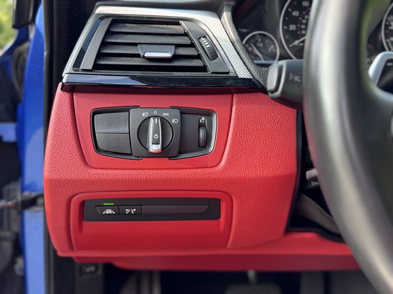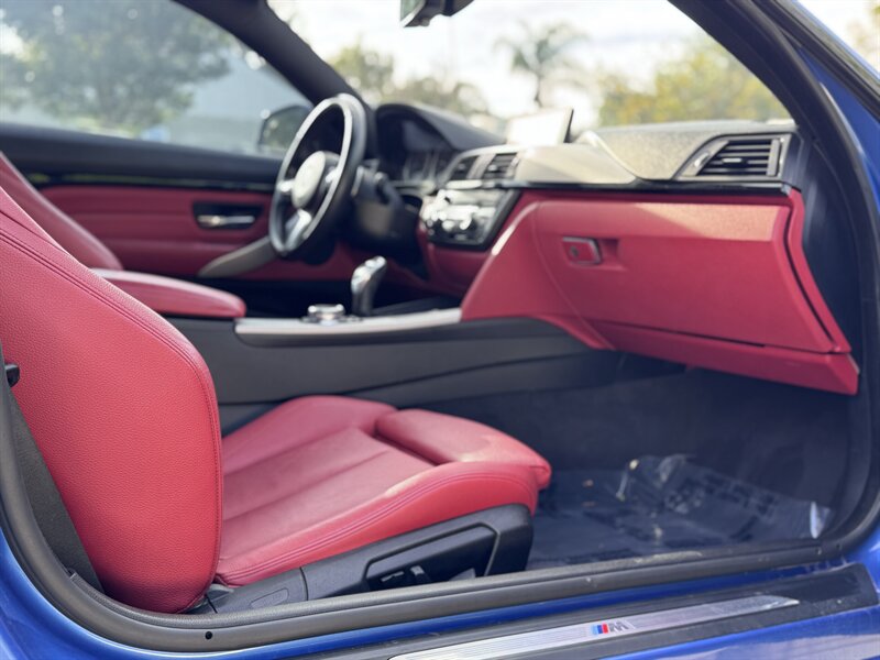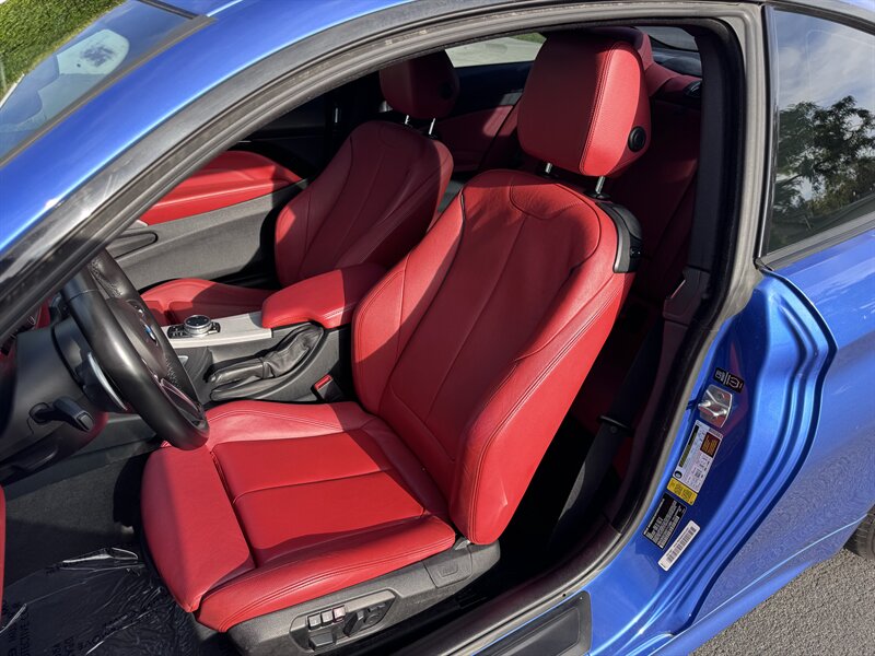 2014 BMW 4 Series 428i in Estoril Blue Metallic with striking Coral Red interior. Powered by a 2.0L turbocharged I4 (240 hp, 255 lb-ft) mated to BMW’s smooth automatic transmission and balanced rear-wheel-drive chassis for responsive, composed driving. Factory equipment includes BMW iDrive with center display and controller, Bluetooth hands-free/streaming, USB/AUX inputs, HD radio, dual-zone automatic climate control, power-adjustable sport front seats with premium leather upholstery, multifunction steering wheel, cruise control, automatic headlights and rain-sensing wipers, ABS with brake assist, Dynamic Stability Control, multiple airbags and tire pressure monitoring, plus alloy wheels. Excellent overall condition, under 122,000 miles (averaging <10,000 miles/year); EPA-rated 22 MPG city / 34 MPG highway.