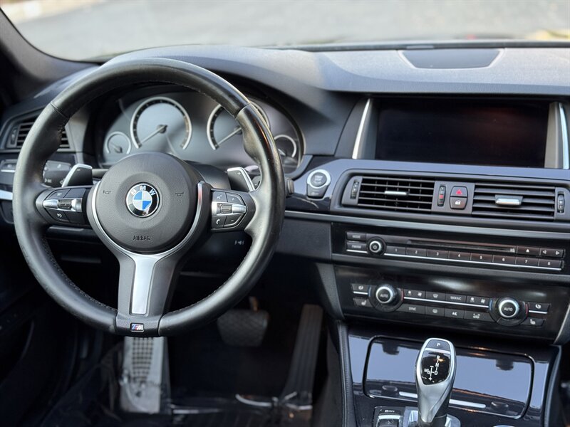 This 2015 BMW 5 Series comes standard with a host of advanced features designed to enhance convenience and connectivity. The iDrive infotainment system is showcased on a high-resolution display, offering intuitive access to navigation, audio, and communication functions. Bluetooth connectivity allows for hands-free calling and audio streaming, keeping you connected without distraction.