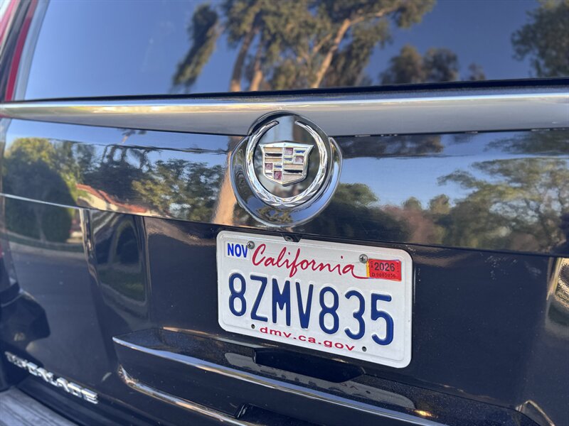 - Exterior: Black Raven finish with premium paint, distinctive Cadillac front grille and chrome accents, integrated daytime running lights and LED taillight elements, power liftgate for convenient cargo access, and roof rails for additional cargo-carrying flexibility.