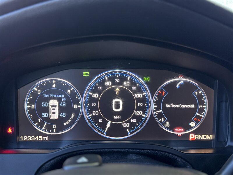 - Infotainment and connectivity: Cadillac CUE infotainment interface with color touchscreen controls, Bluetooth hands-free calling and audio streaming, USB and auxiliary audio inputs, and available satellite radio capability. Integrated navigation and voice-command functionality are common factory options on this trim.