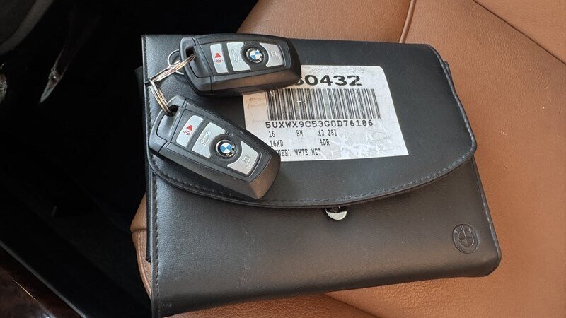 2016 BMW X3 xDrive28i — Mineral White Metallic exterior with Saddle Brown leather interior. Powered by a 2.0L TwinPower Turbo inline-4 producing 240 hp and 260 lb-ft of torque, mated to an 8-speed automatic transmission and BMW xDrive all-wheel-drive system. EPA rating is 21 MPG city / 28 MPG highway. Vehicle is in excellent overall condition.