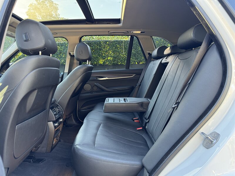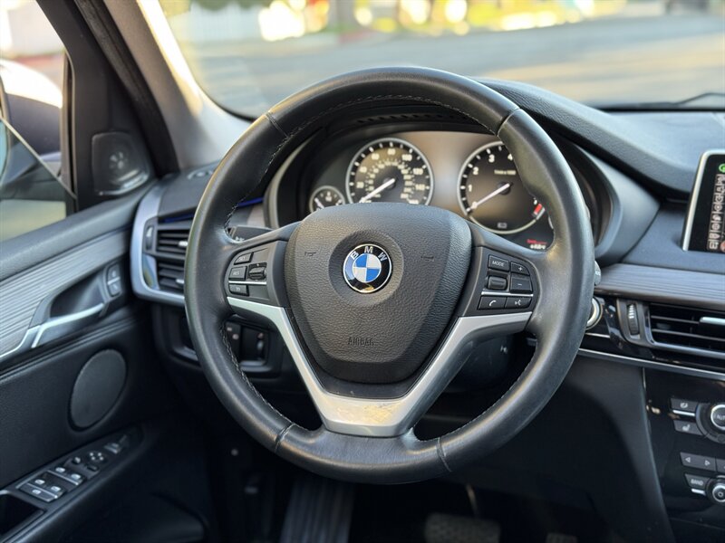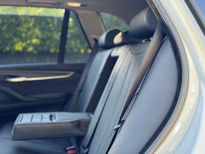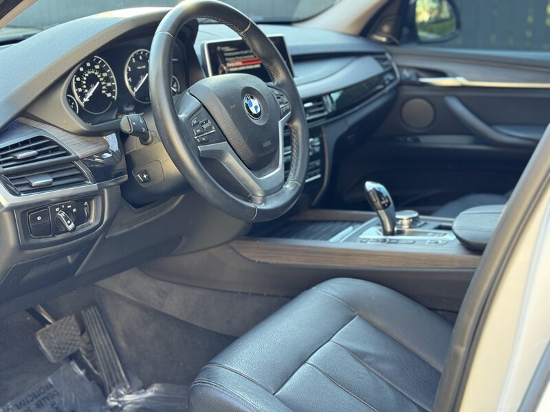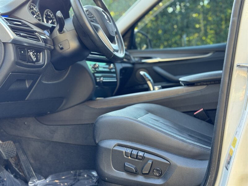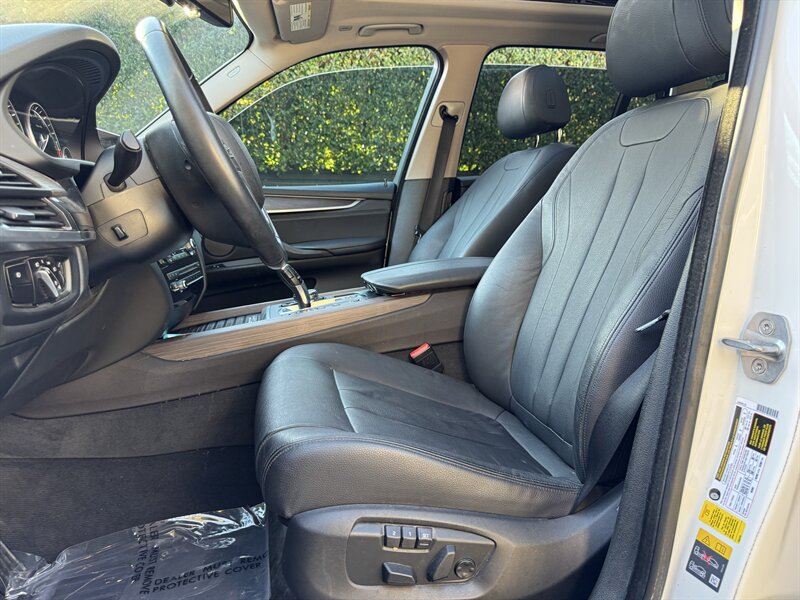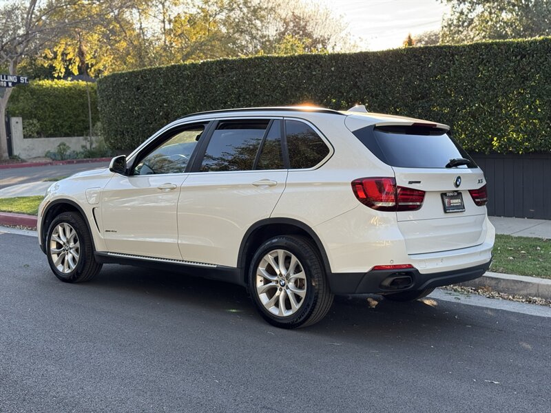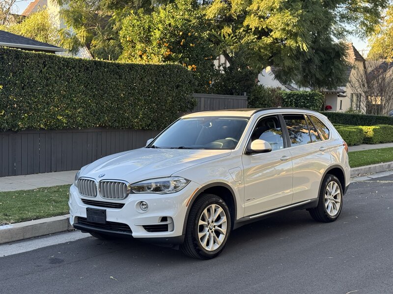 Alpine White 2016 BMW X5 xDrive40e — a lively plug-in hybrid pairing a 2.0L turbo I4 with an electric motor for a combined 308 hp and 332 lb-ft, mated to BMW’s smooth 8-speed automatic and xDrive all-wheel drive. Factory equipment includes BMW eDrive features (EV mode, regenerative braking, dedicated hybrid drive modes and on-board charging with cable), adaptive xenon/LED lighting, power liftgate, dual-zone automatic climate control, power-adjustable front seats with memory, a leather-trimmed steering wheel with audio/phone controls, and BMW’s iDrive infotainment with controller, color display, Bluetooth and USB inputs. Safety and convenience come standard with a rearview camera, parking sensors, ABS, stability/traction control, multiple airbags and tire pressure monitoring. With a Black interior, excellent overall condition, and EPA-equivalent efficiency of 23 MPG city / 25 MPG highway, this X5 blends sporty performance, premium comfort and everyday efficiency with a cheerful driving character.