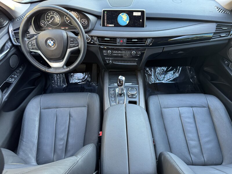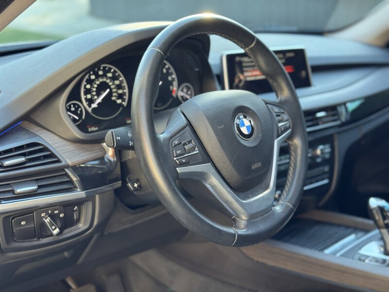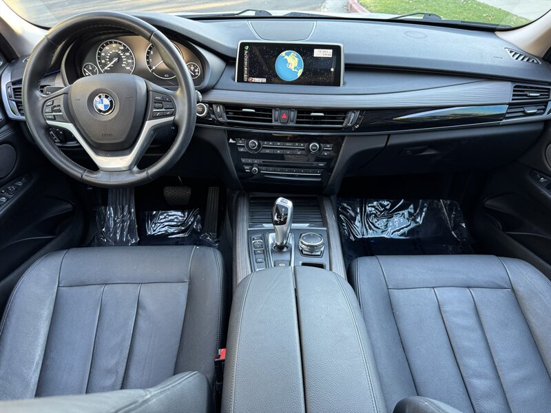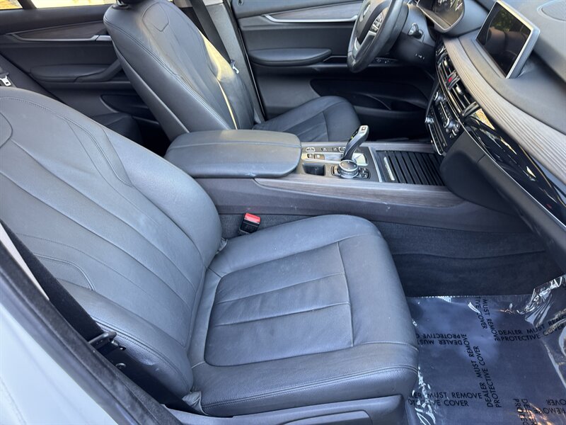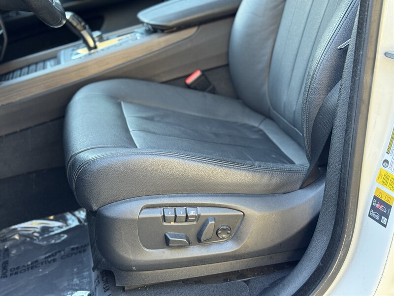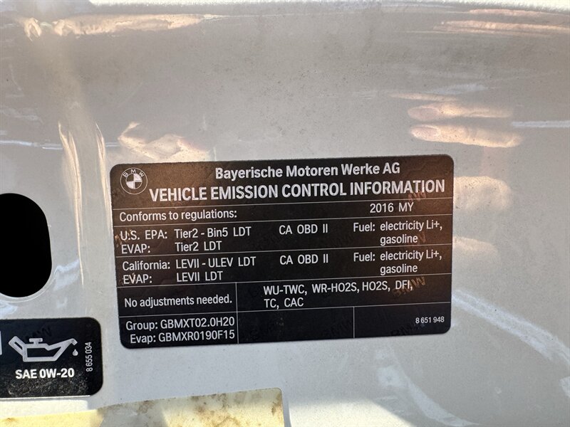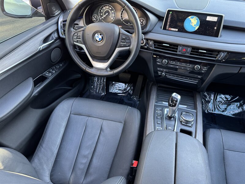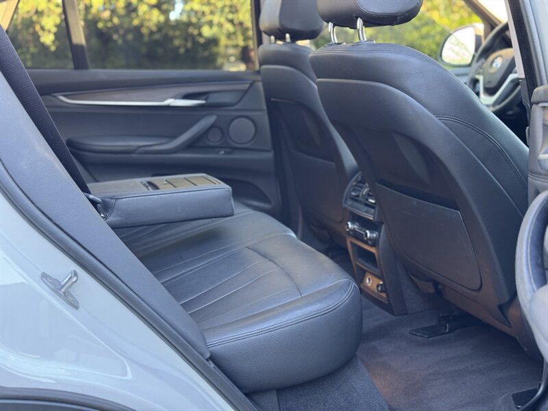 Alpine White 2016 BMW X5 xDrive40e — a lively plug-in hybrid pairing a 2.0L turbo I4 with an electric motor for a combined 308 hp and 332 lb-ft, mated to BMW’s smooth 8-speed automatic and xDrive all-wheel drive. Factory equipment includes BMW eDrive features (EV mode, regenerative braking, dedicated hybrid drive modes and on-board charging with cable), adaptive xenon/LED lighting, power liftgate, dual-zone automatic climate control, power-adjustable front seats with memory, a leather-trimmed steering wheel with audio/phone controls, and BMW’s iDrive infotainment with controller, color display, Bluetooth and USB inputs. Safety and convenience come standard with a rearview camera, parking sensors, ABS, stability/traction control, multiple airbags and tire pressure monitoring. With a Black interior, excellent overall condition, and EPA-equivalent efficiency of 23 MPG city / 25 MPG highway, this X5 blends sporty performance, premium comfort and everyday efficiency with a cheerful driving character.