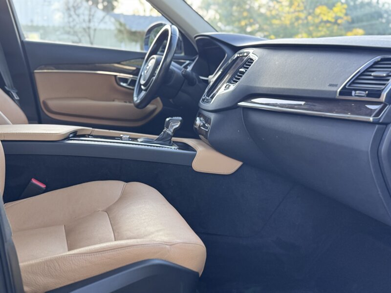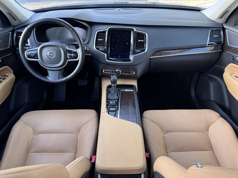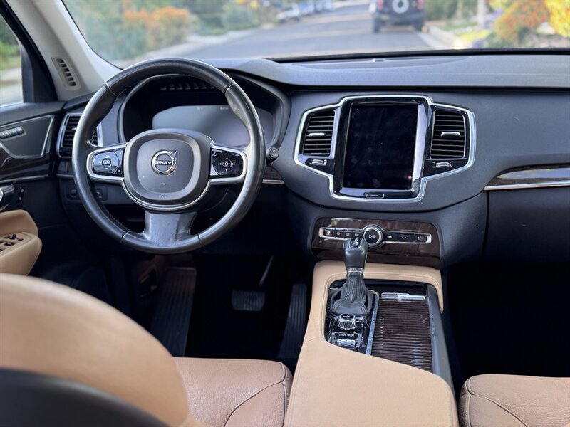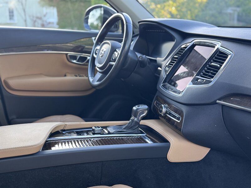 2016 Volvo XC90 T6 Momentum in Ember Black Metallic with Amber interior. Powered by a 2.0L twincharged I4 (316 hp / 295 lb-ft) mated to an 8-speed automatic and AWD, EPA-rated 22 MPG city / 25 MPG highway; vehicle is in excellent overall condition.