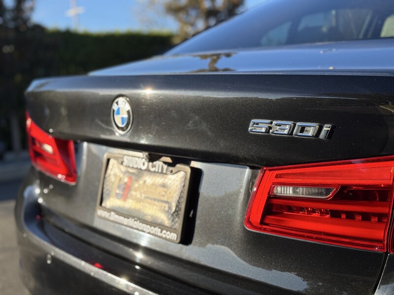 The exterior of this 530i is finished in a sleek Jet Black, offering a sophisticated and timeless appearance. Its aerodynamic design is complemented by sharp lines and a bold front grille, giving it a commanding presence on the road. The vehicle sits on stylish alloy wheels that enhance its sporty aesthetic.