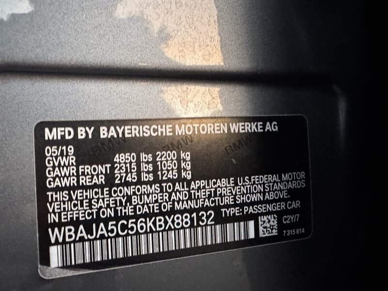 Introducing the 2019 BMW 530i, a blend of luxury, performance, and efficiency. This sophisticated sedan is powered by a robust 2.0L Turbocharged I4 engine, delivering an impressive 248 horsepower and 257 ft-lbs of torque, ensuring a dynamic driving experience whether you’re navigating city streets or cruising on the highway.