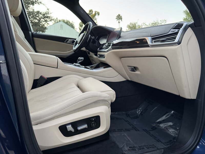 The exterior of this X5 is finished in a striking Phytonic Blue Metallic, providing a bold and modern look that stands out in any environment. The sleek lines and aerodynamic design not only enhance its aesthetic appeal but also contribute to its performance and efficiency.
