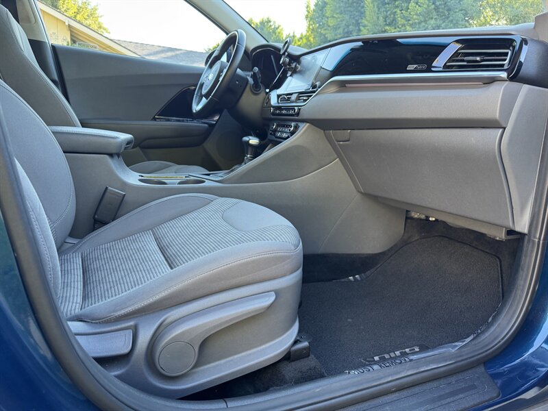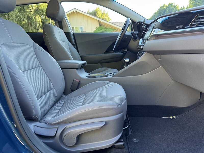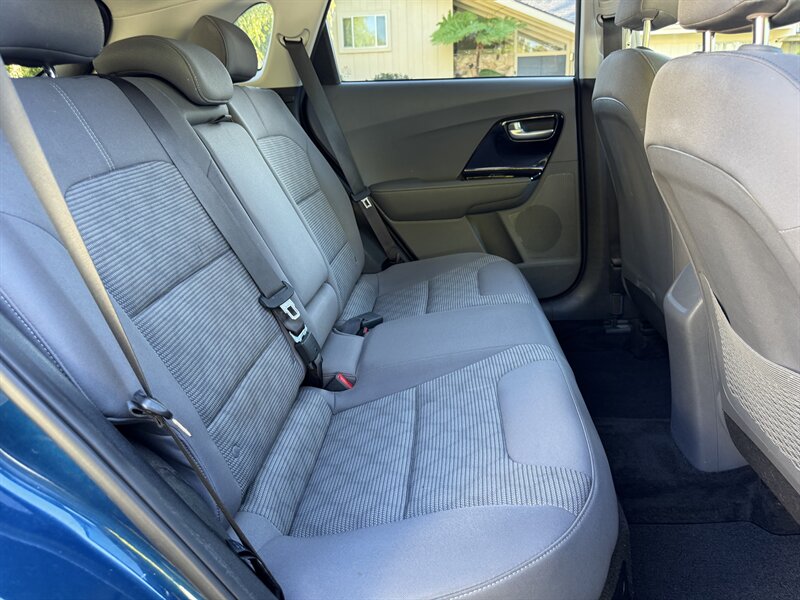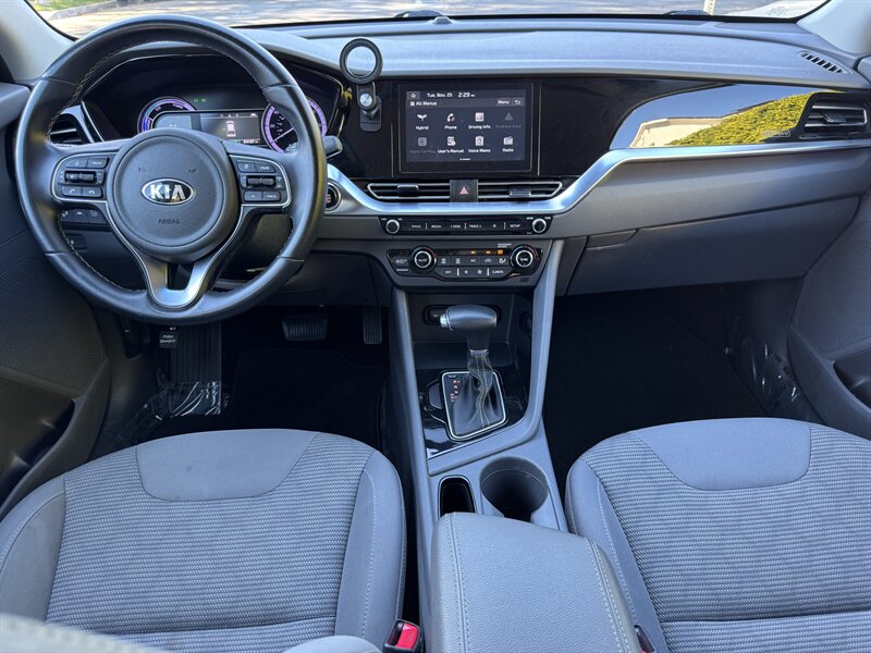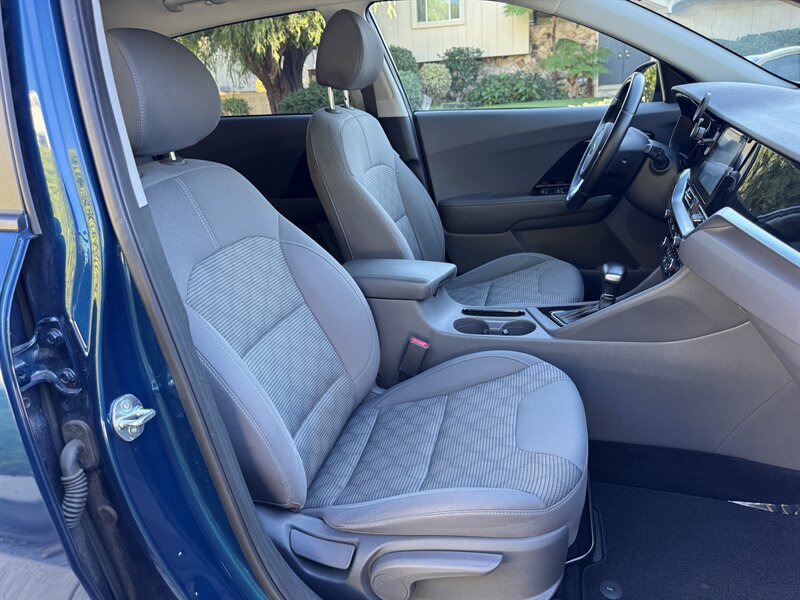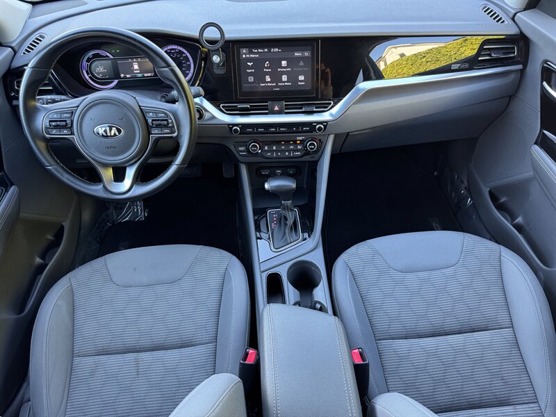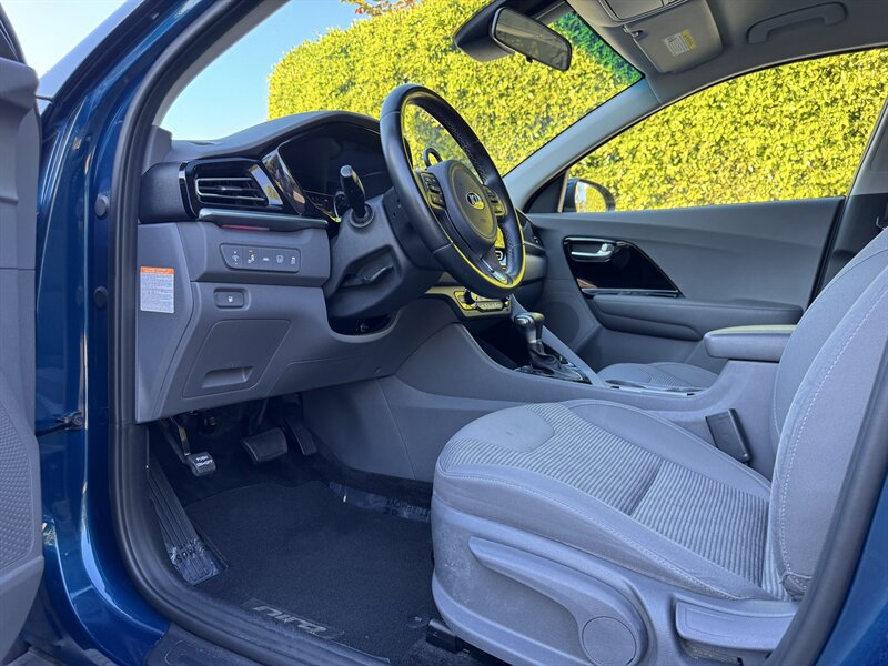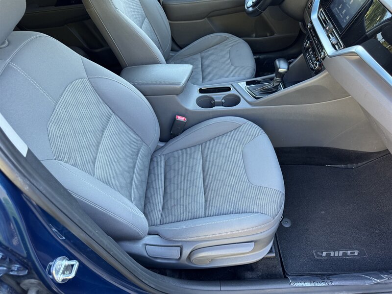 Inside, the Niro features a Gray interior that provides a comfortable and inviting atmosphere. The cabin is thoughtfully designed with high-quality materials and ample space for both passengers and cargo. The Niro LX comes equipped with a range of factory default features that enhance your driving experience, including: