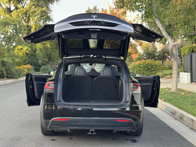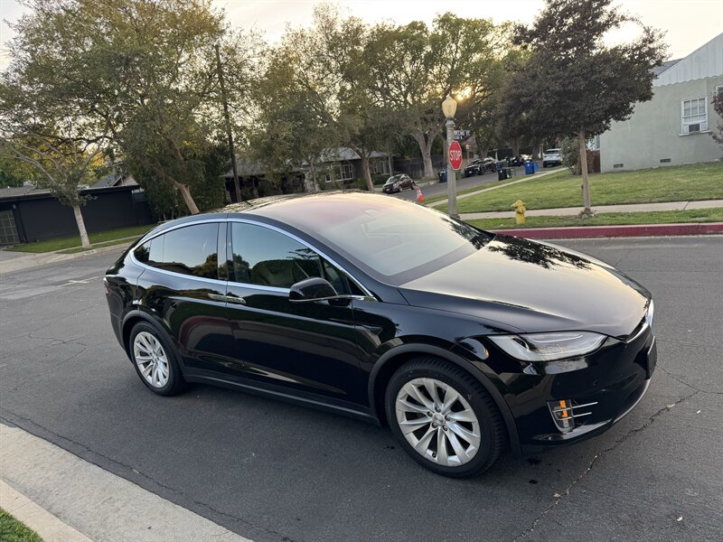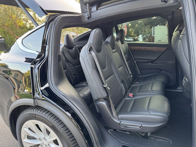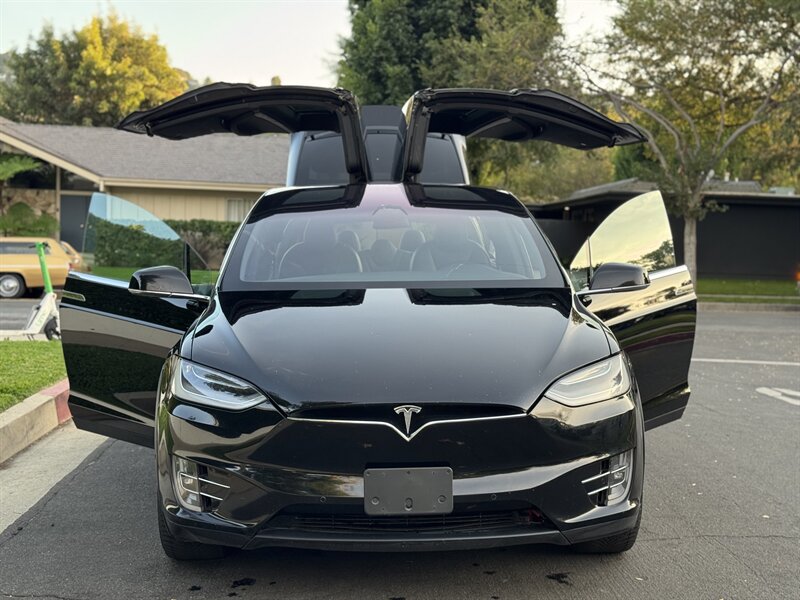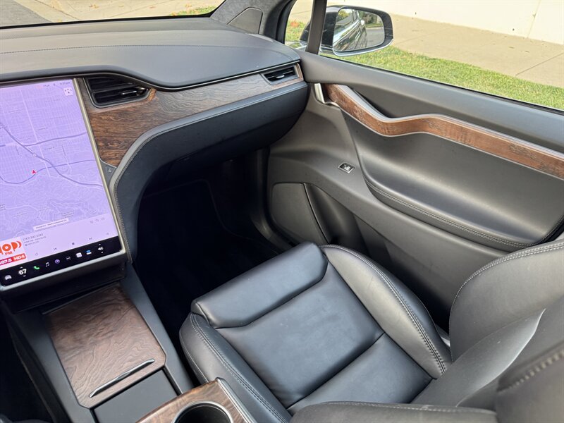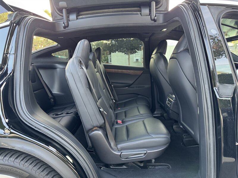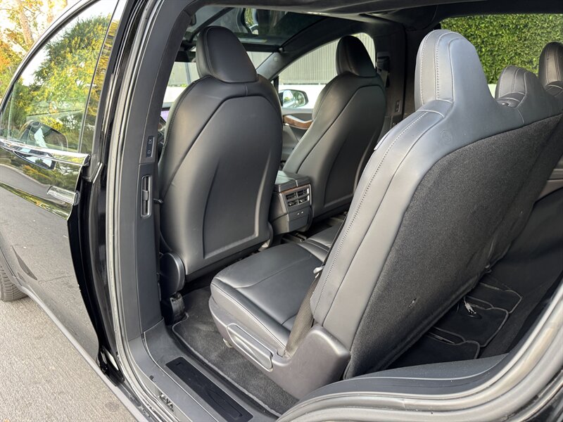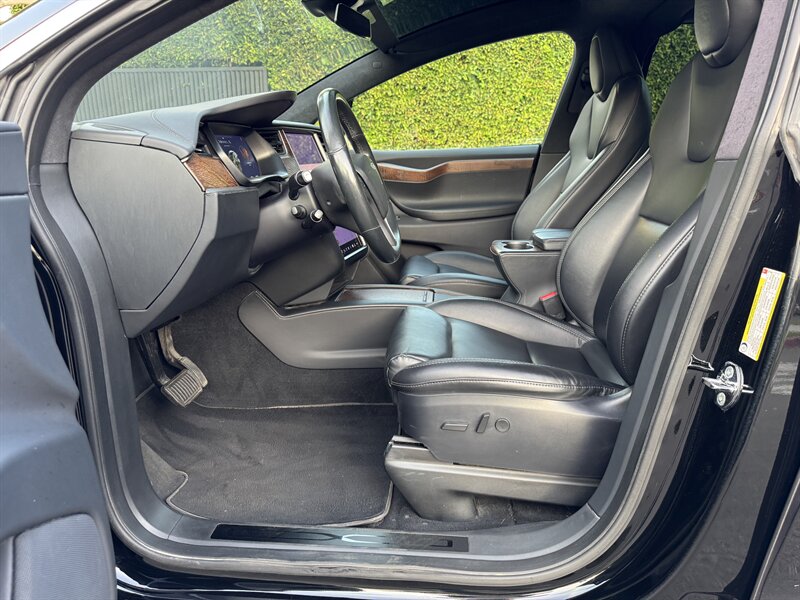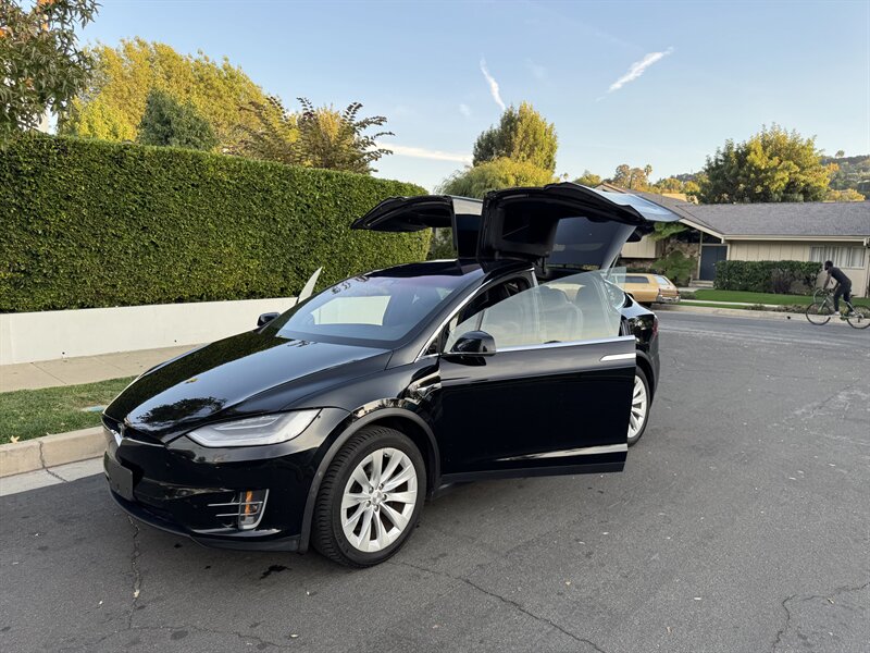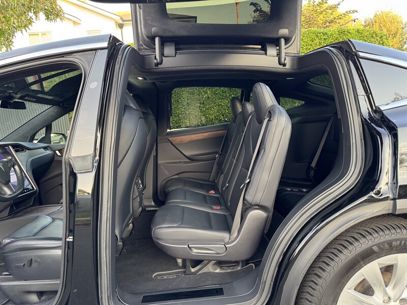 The exterior of this Model X is finished in a sleek Solid Black, exuding sophistication and modernity. Its aerodynamic design not only enhances its visual appeal but also contributes to its impressive range. The signature falcon-wing doors provide easy access to both the front and rear seats, making it a practical choice for families and passengers alike.