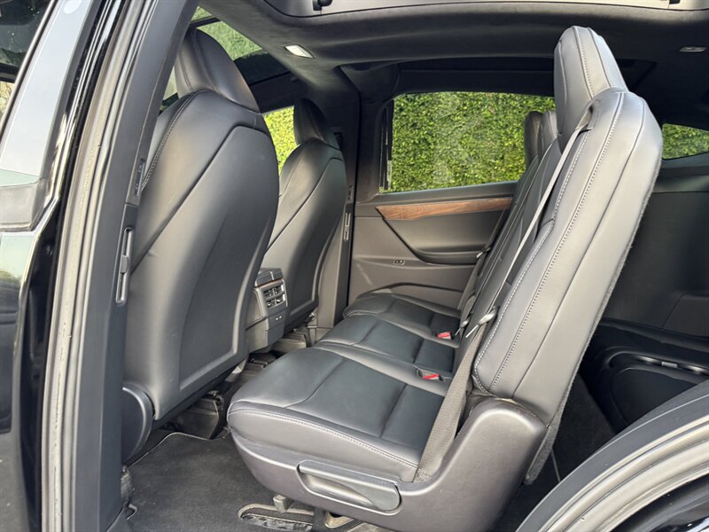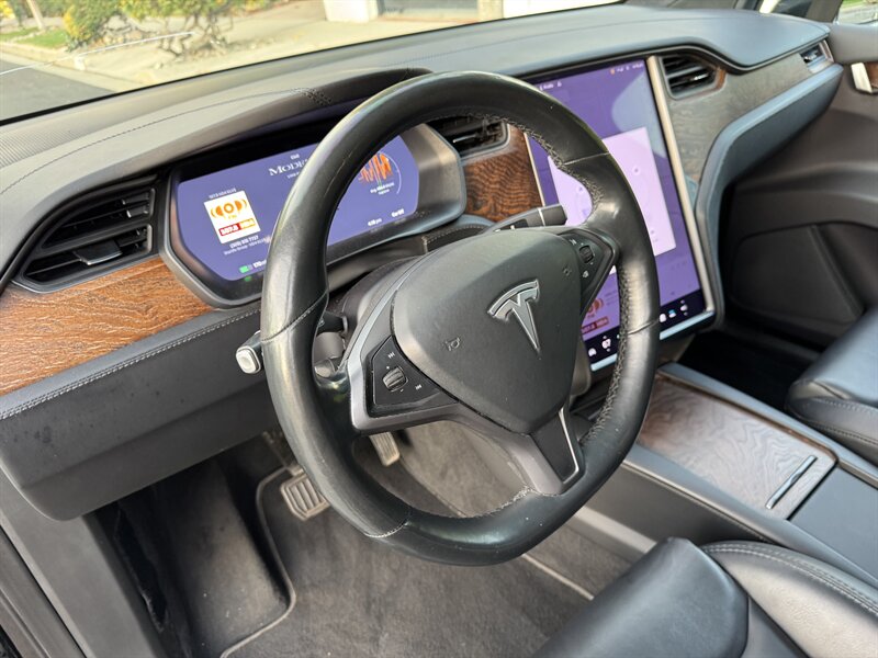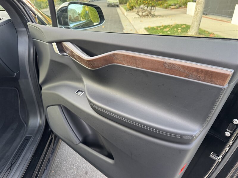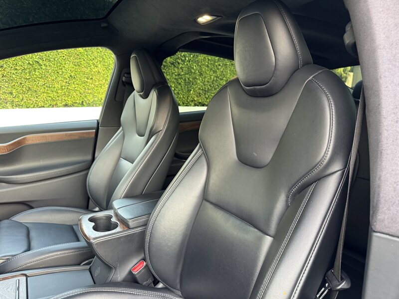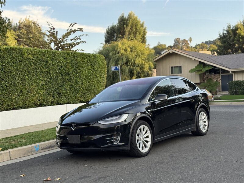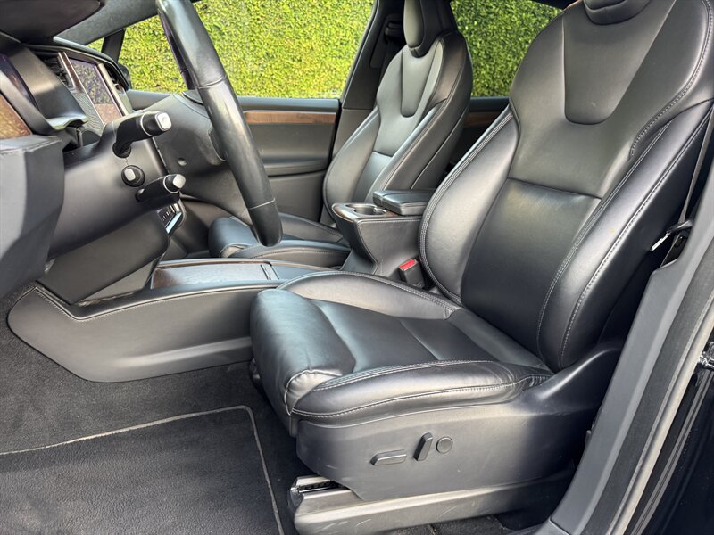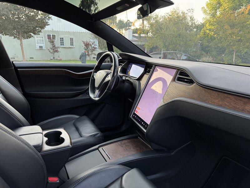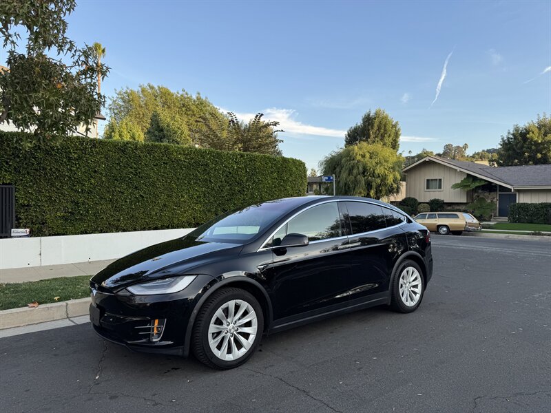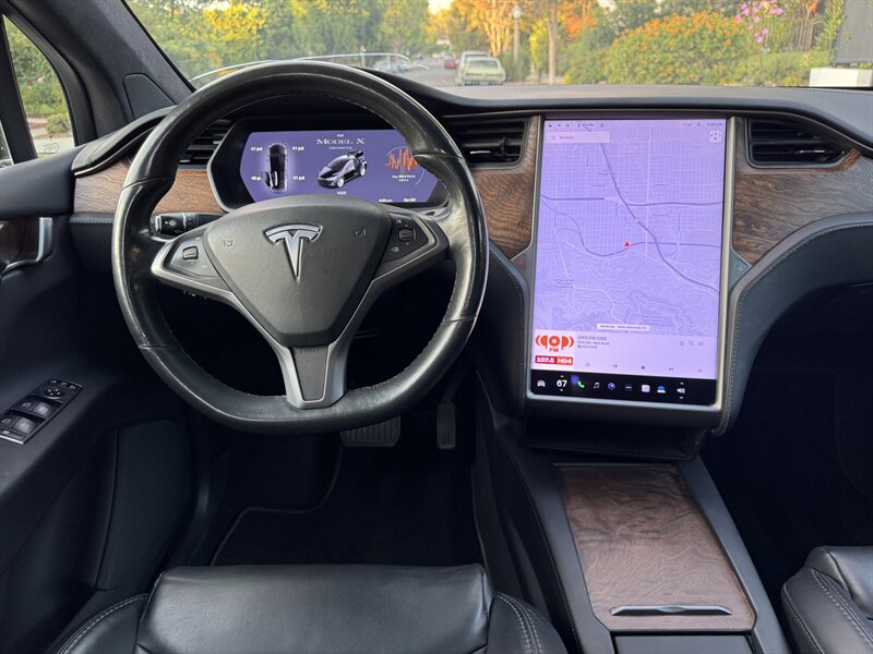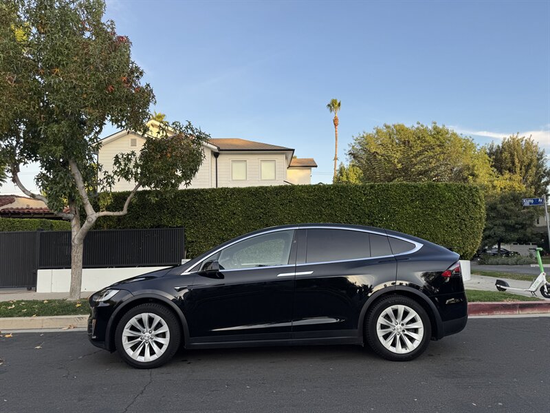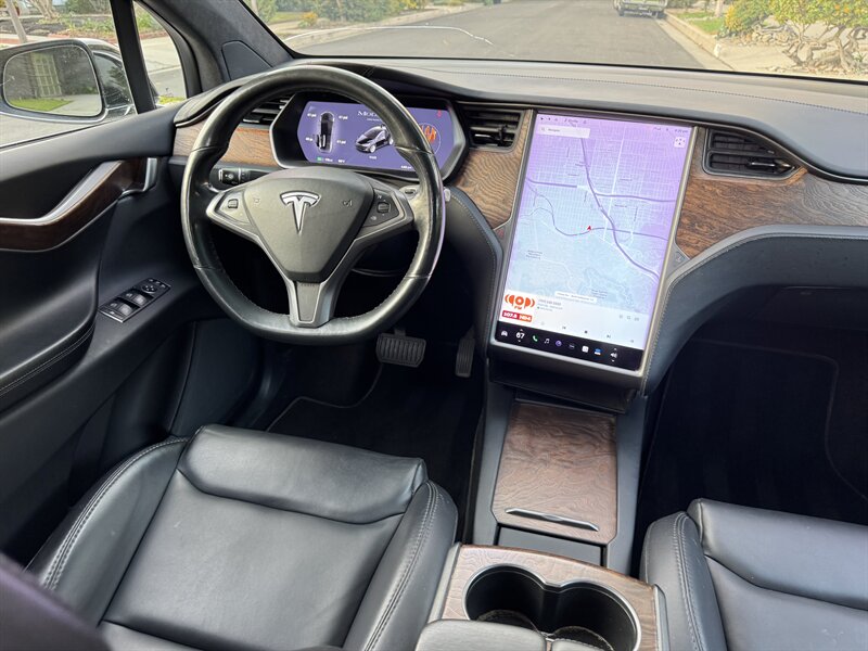 The exterior of this Model X is finished in a sleek Solid Black, exuding sophistication and modernity. Its aerodynamic design not only enhances its visual appeal but also contributes to its impressive range. The signature falcon-wing doors provide easy access to both the front and rear seats, making it a practical choice for families and passengers alike.