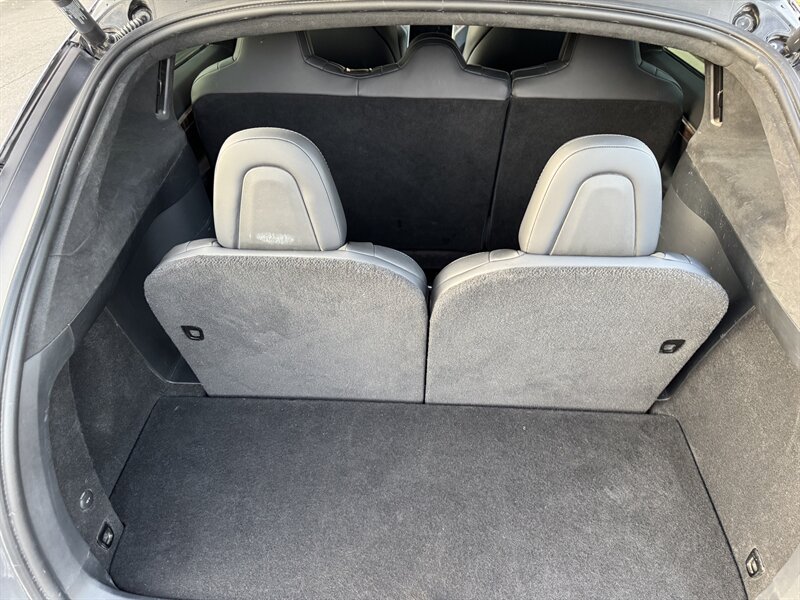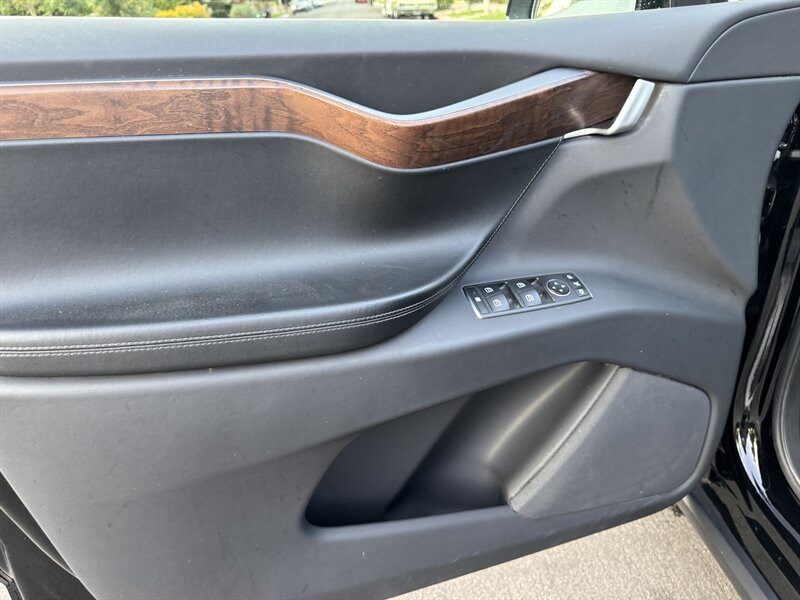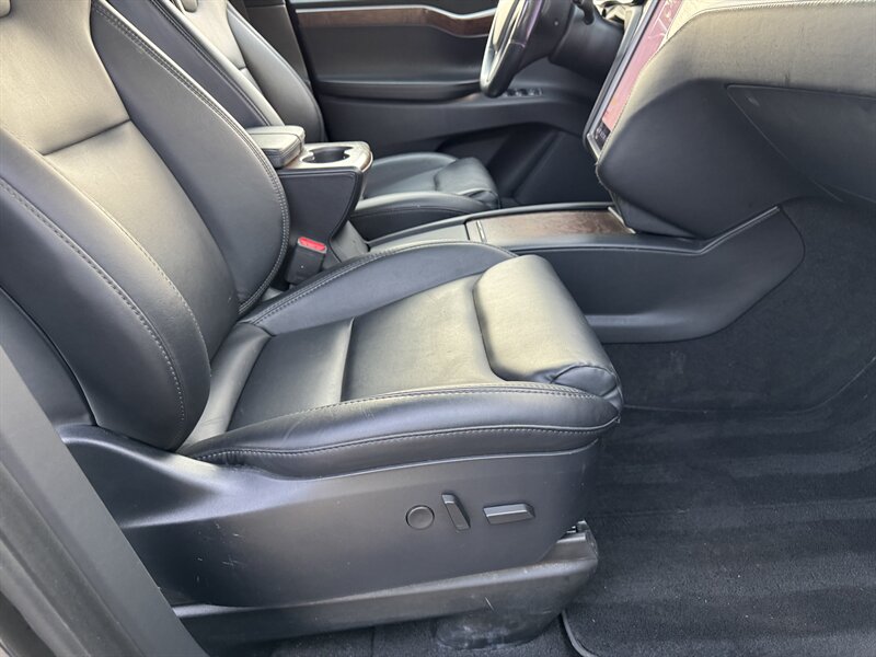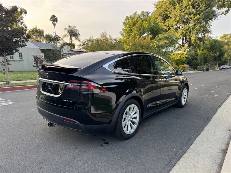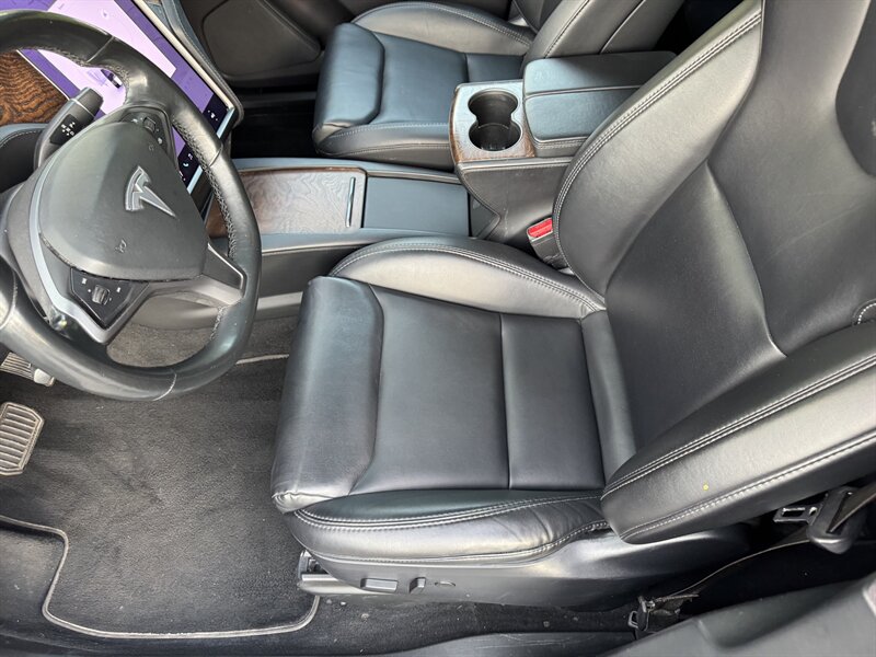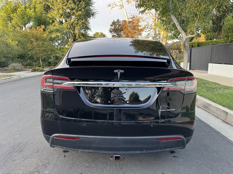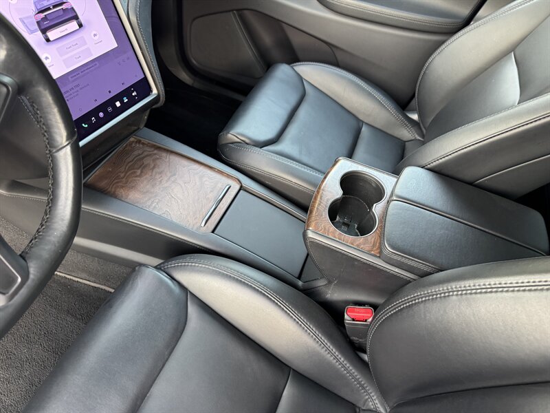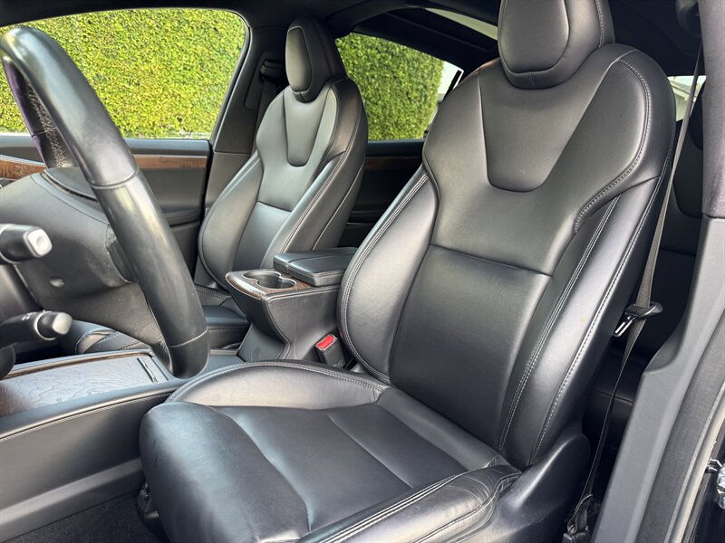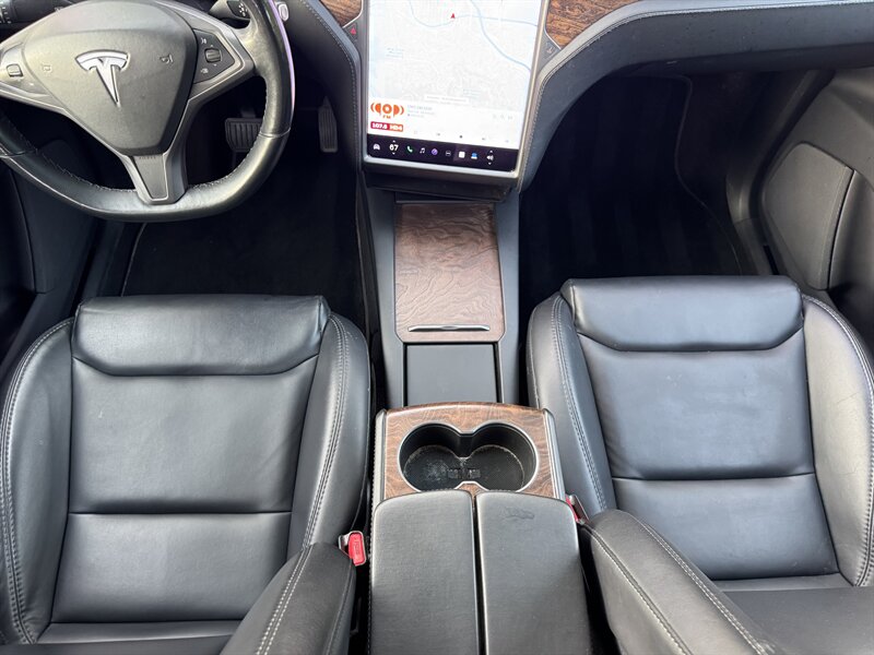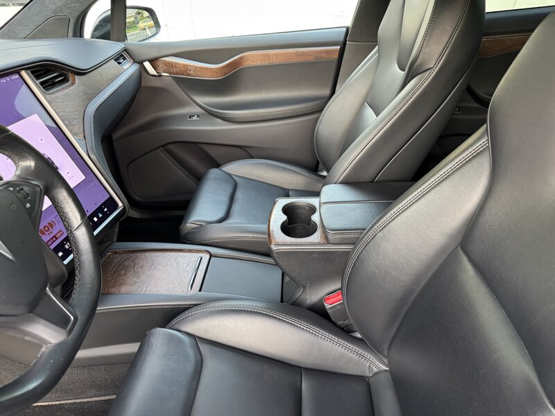 The exterior of this Model X is finished in a sleek Solid Black, exuding sophistication and modernity. Its aerodynamic design not only enhances its visual appeal but also contributes to its impressive range. The signature falcon-wing doors provide easy access to both the front and rear seats, making it a practical choice for families and passengers alike.
