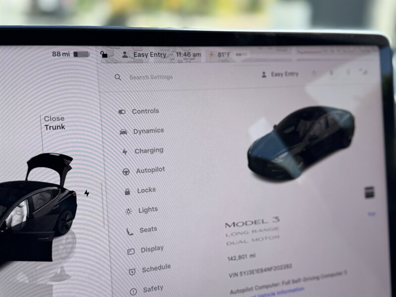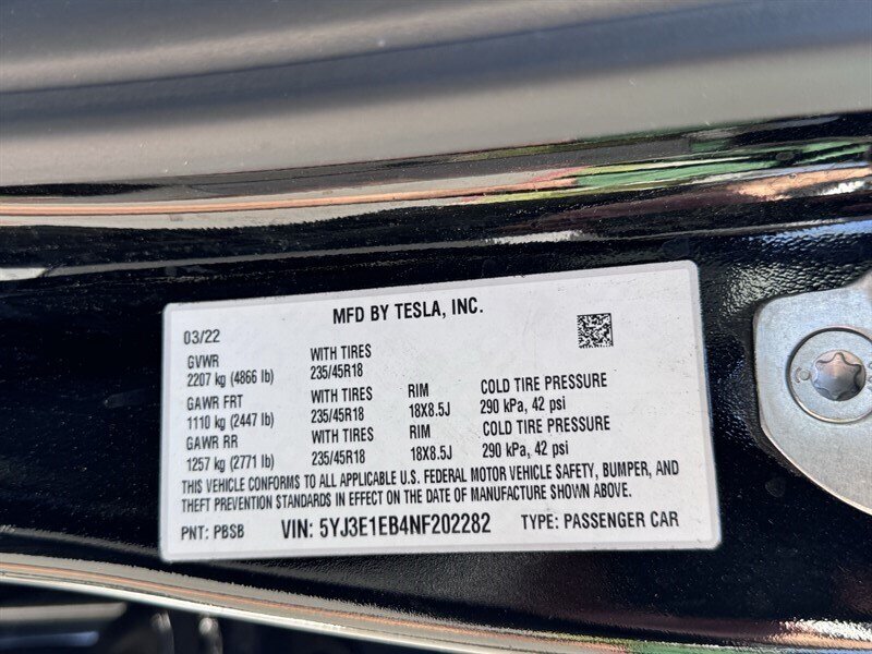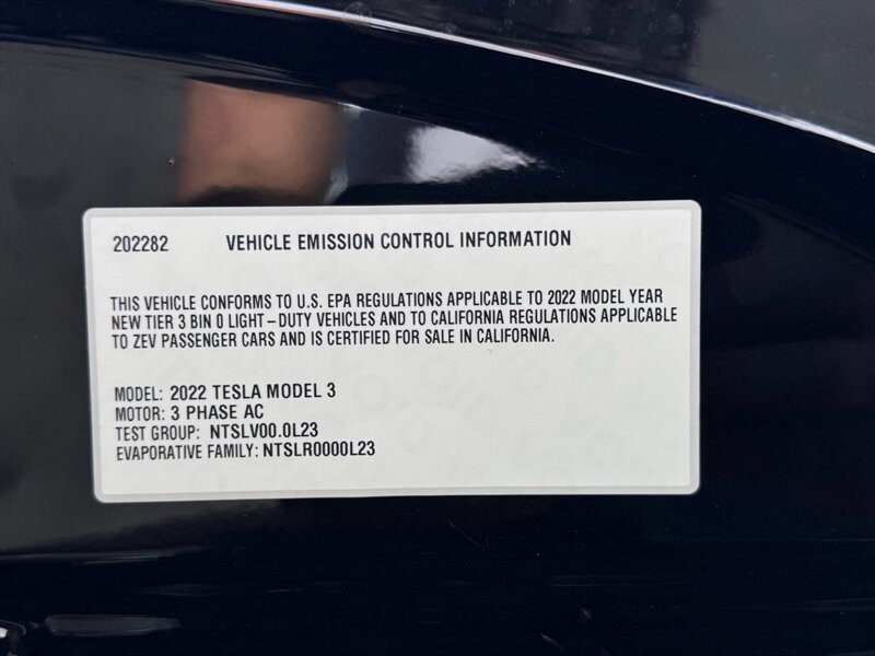 2022 Tesla Model 3 Long Range — Solid Black exterior, Black interior, excellent overall condition. Powered by an electric drivetrain producing 346 hp and 389 lb-ft of torque with Dual-Motor all-wheel drive, this factory-equipped Long Range comes with Tesla’s standard Autopilot driver-assist features (traffic-aware cruise control and autosteer), a camera-based sensor suite with ultrasonic sensors, and a 15-inch central touchscreen that handles navigation, media, climate control and over-the-air updates. Factory features also include a full glass roof, premium black upholstery, heated front and rear seats, keyless phone-based entry and key card, wireless phone charging and USB ports, premium audio, LED lighting and regenerative braking.