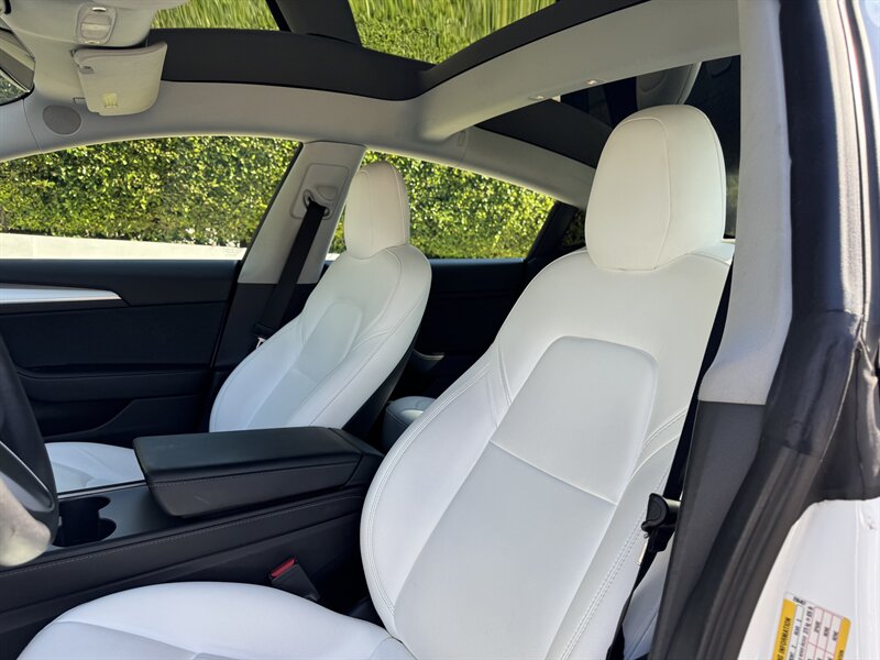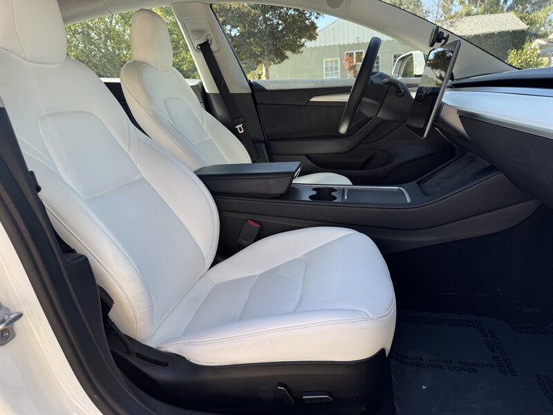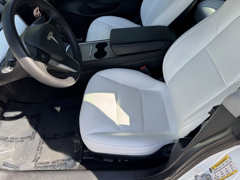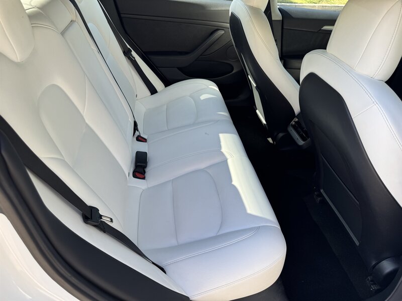 The Model 3 features a striking Pearl White Multi-Coat finish that enhances its sleek and modern design. The aerodynamic silhouette not only contributes to its stylish appearance but also aids in reducing drag, further optimizing efficiency. The vehicle is equipped with LED headlights and taillights, providing excellent visibility and a contemporary look. The 18-inch or optional 19-inch wheels complement the overall aesthetic while offering a smooth ride.