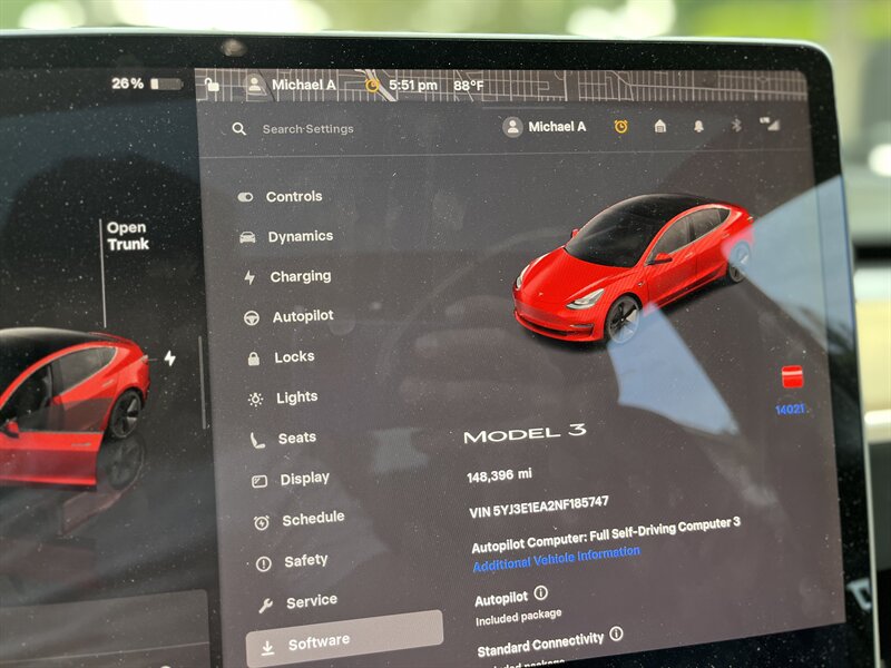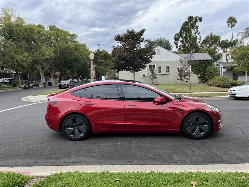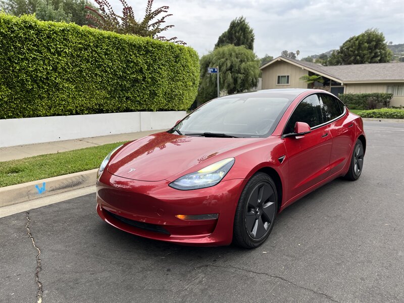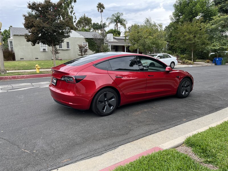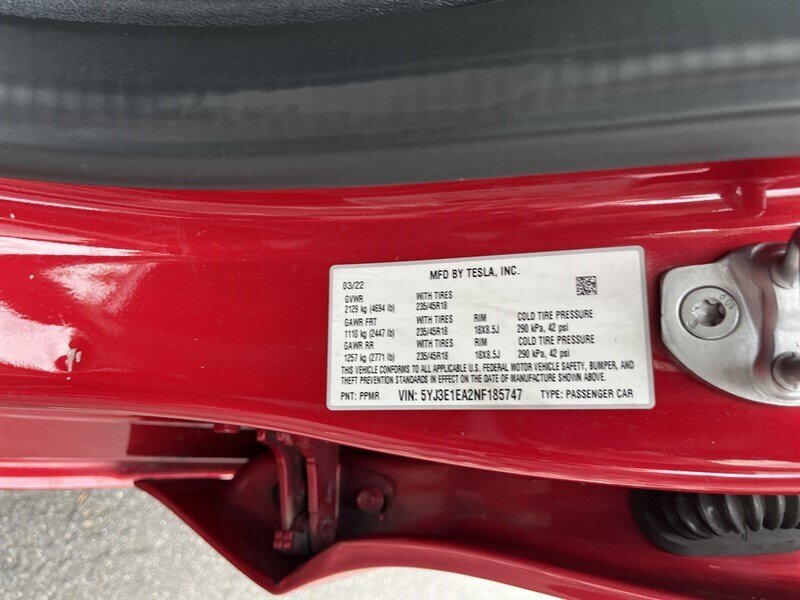 Introducing the 2022 Tesla Model 3 - a stunning electric vehicle that boasts a powerful 201hp 258ft. lbs. engine. This vehicle comes in a sleek Red Multi-Coat exterior and a Black interior, both in excellent overall condition. The factory default features of this car are impressive, including a 15-inch touchscreen display, a rearview camera, Wi-Fi connectivity, automatic emergency braking, adaptive cruise control, and more. With its advanced technology, exceptional performance, and stylish design, the 2022 Tesla Model 3 is an excellent choice for any car enthusiast.