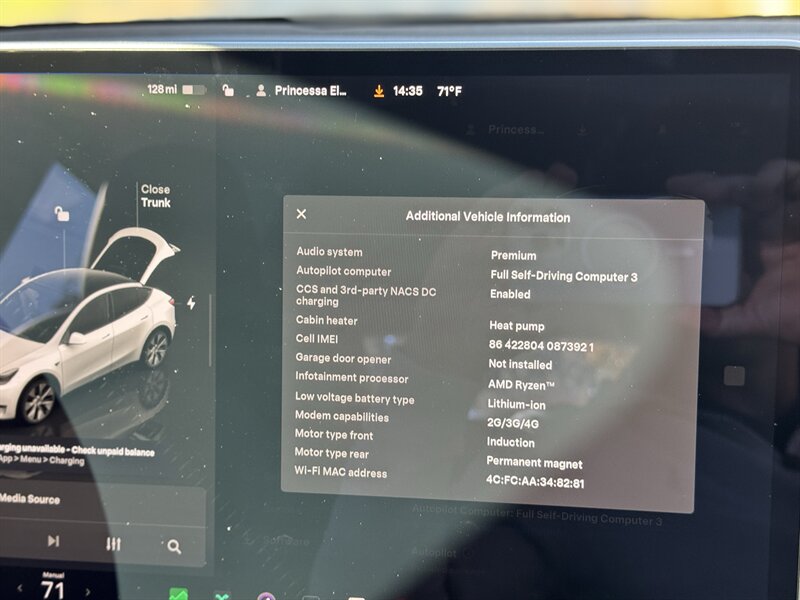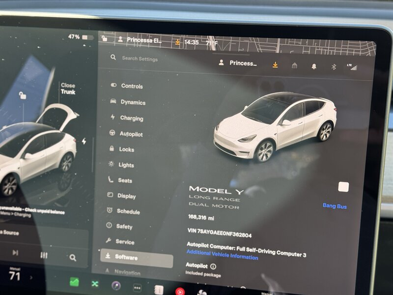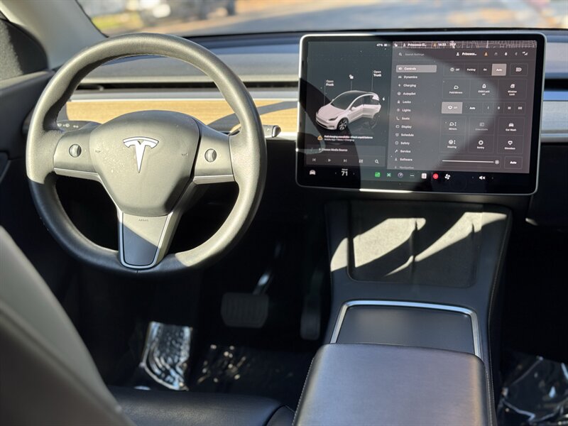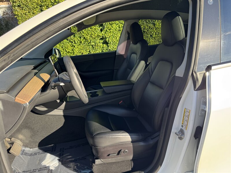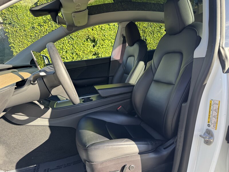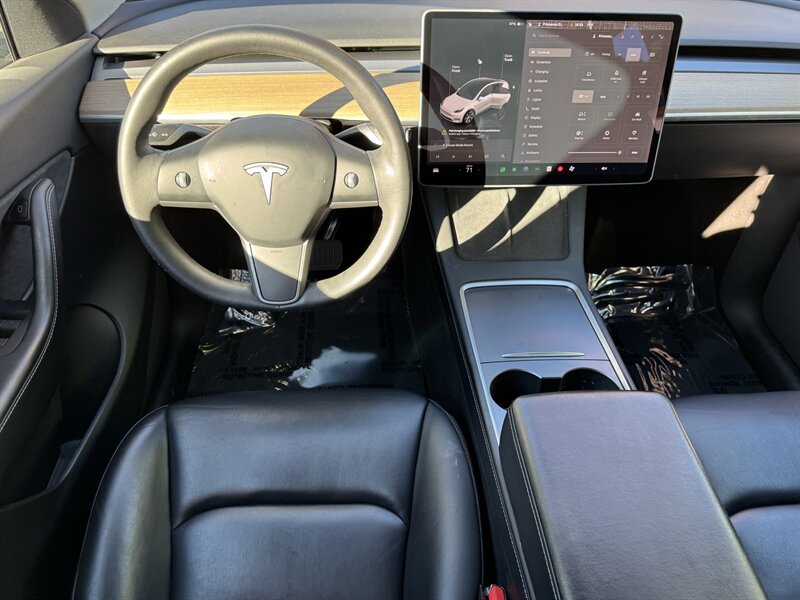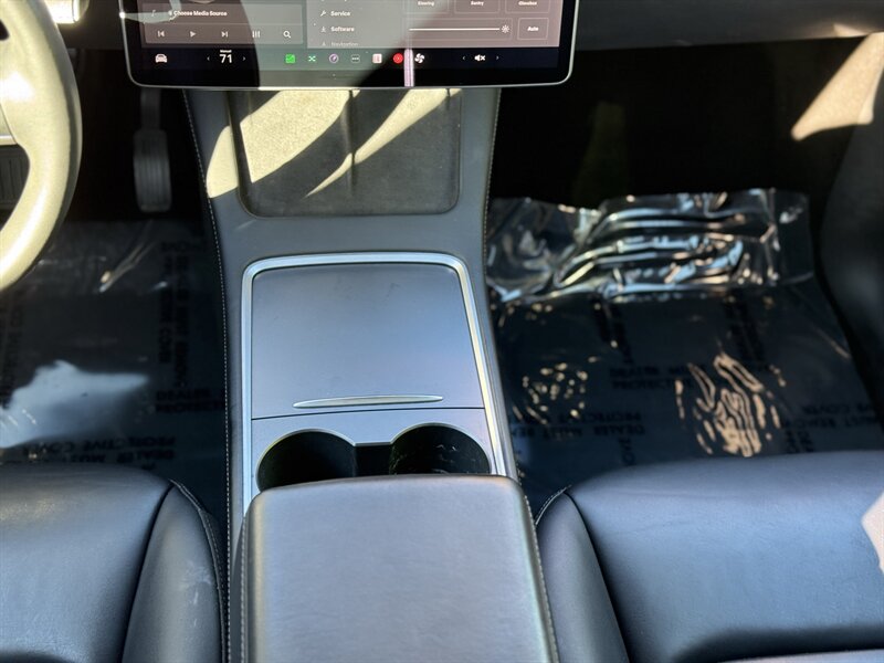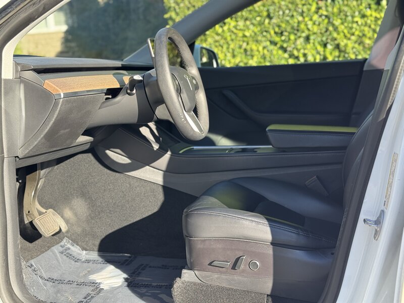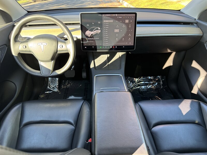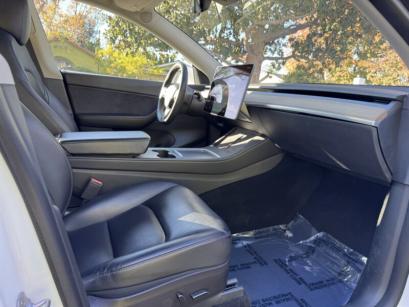 Step inside to a refined Black interior that combines comfort with cutting-edge technology. The spacious cabin is designed to accommodate up to five passengers, featuring premium seating materials and ample legroom for all. The minimalist dashboard houses a large 15-inch touchscreen display that serves as the control center for navigation, media, and vehicle settings. With Tesla's intuitive interface, accessing features such as climate control, entertainment, and vehicle information is seamless.