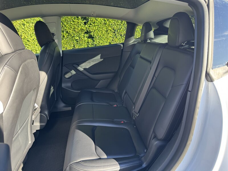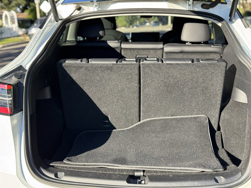 The spacious cargo area offers versatile storage options, with a rear hatch that provides easy access to your belongings. With the rear seats folded down, the Model Y can accommodate larger items, making it perfect for road trips or everyday errands.