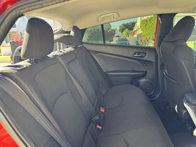 The exterior of the Prius LE features a sleek and aerodynamic design that enhances both style and efficiency. Standard features include LED headlights, daytime running lights, and 15-inch alloy wheels, providing both functionality and aesthetic appeal. The rear hatch design offers easy access to the spacious cargo area, making it practical for daily use.