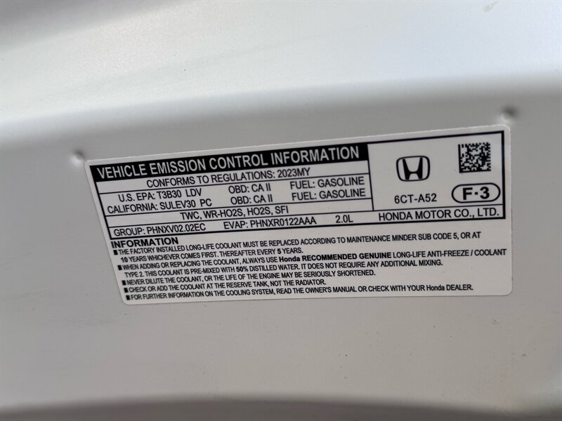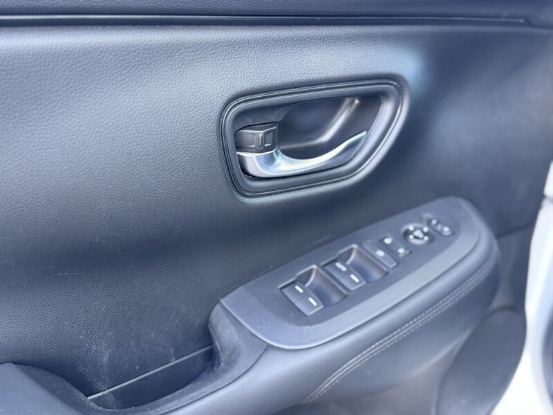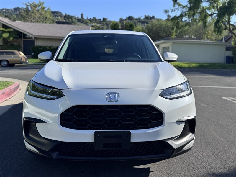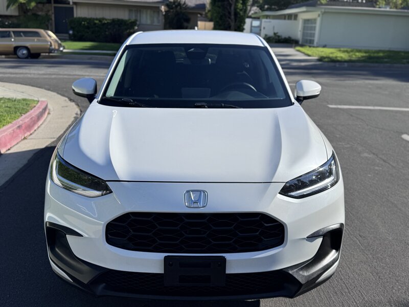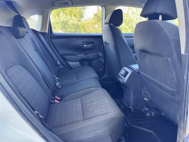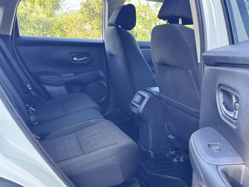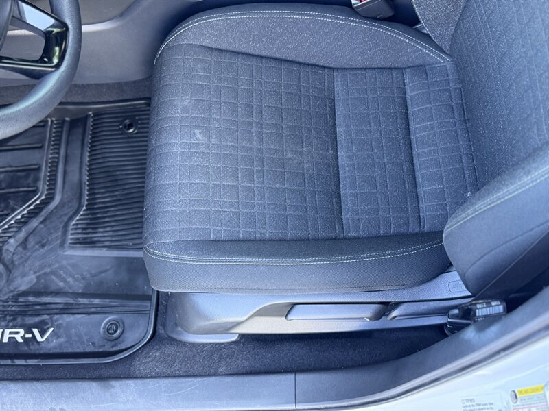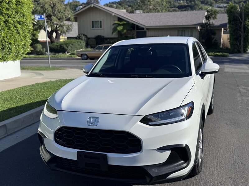 2023 Honda HR-V LX in Platinum White Pearl with a Black cloth interior, powered by a 2.0L I4 producing 158 hp and 138 ft-lbs, EPA-rated at 25 MPG city / 30 MPG highway. Factory-standard equipment includes Honda Sensing safety and driver-assist technologies (Collision Mitigation Braking, Lane Keeping Assist, Road Departure Mitigation, Adaptive Cruise Control), a rearview camera, ABS with stability and traction control, full front and side airbags, and a 7-inch infotainment display with Apple CarPlay/Android Auto, Bluetooth and USB connectivity. Additional standard comforts are cloth seats, manual climate control, power windows and locks, remote keyless entry, cruise control, and a split-folding rear seat for added cargo versatility. This vehicle is in excellent overall condition.