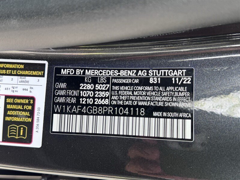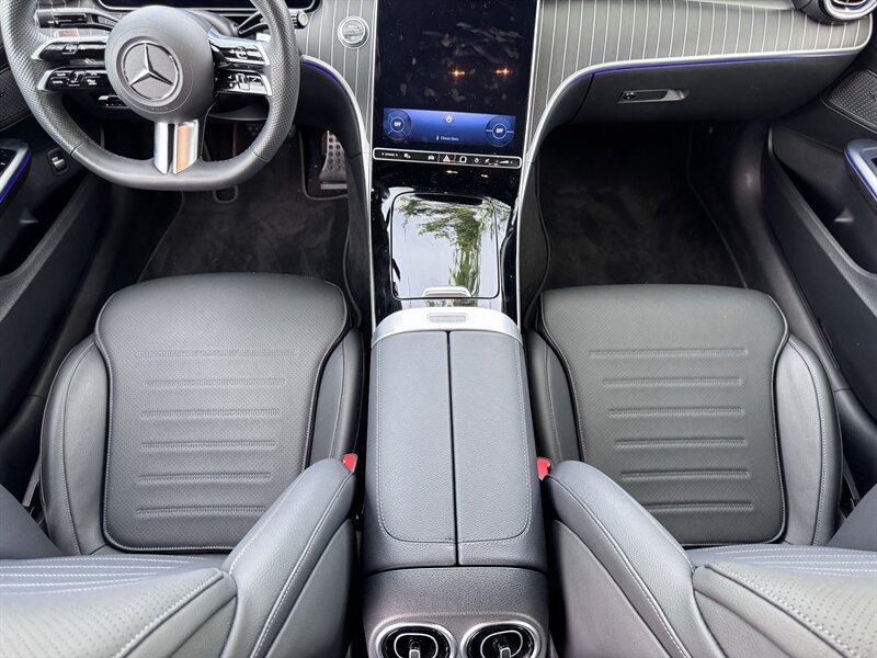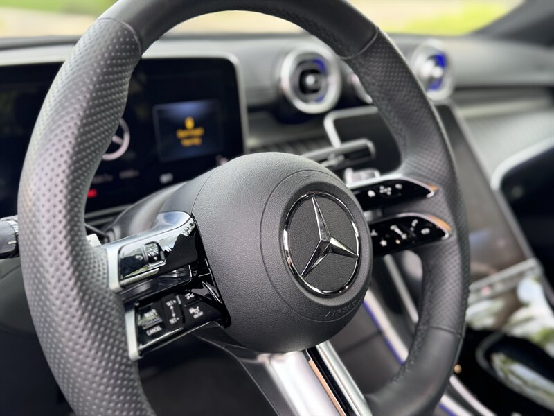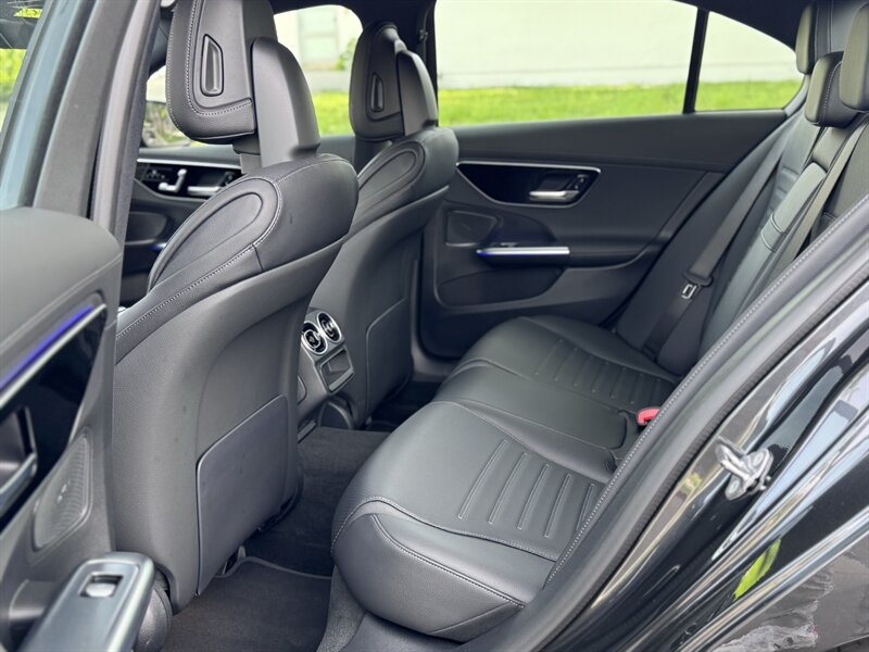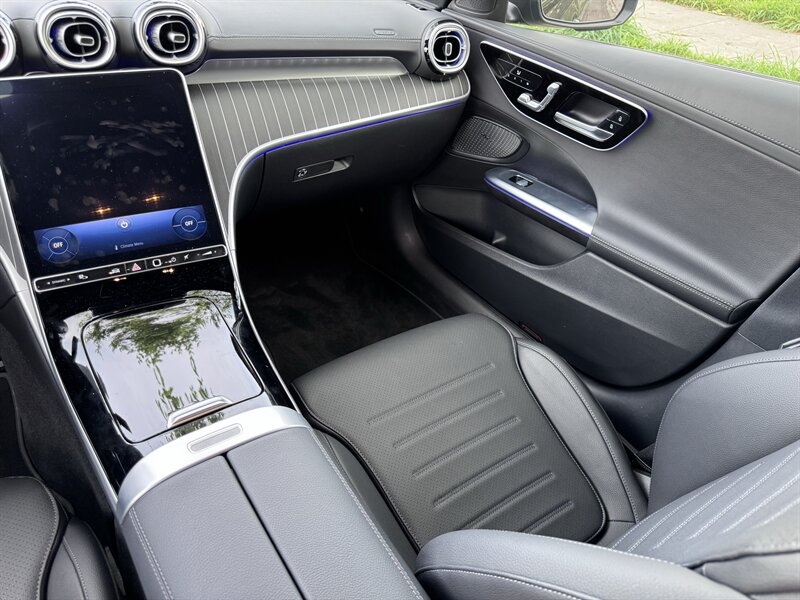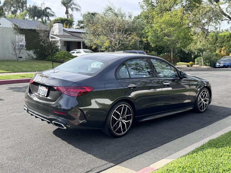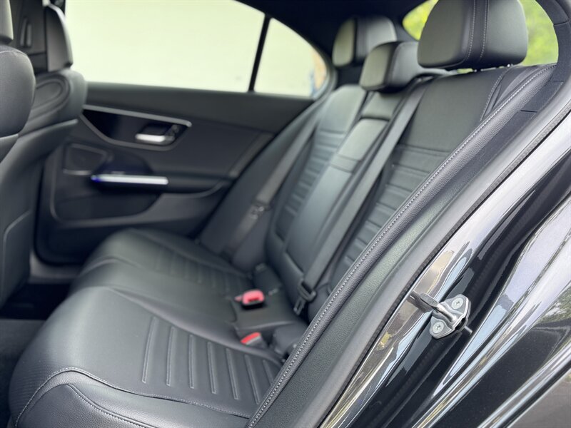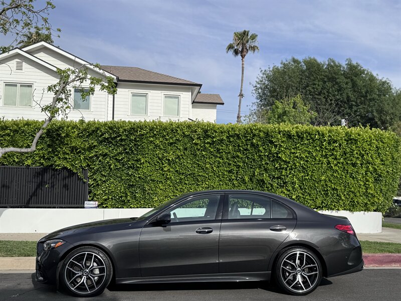 2023 Mercedes-Benz C 300 in Graphite Grey Metallic with a Black interior, powered by a 2.0L mild-hybrid e-turbo I4 producing 255 hp and 295 lb-ft. Factory-standard features include MBUX infotainment with dual high-resolution displays and natural-language voice control, wireless Apple CarPlay/Android Auto, navigation, Bluetooth and USB-C connectivity, dual-zone automatic climate control, power-adjustable front seats, ambient interior lighting, keyless start, LED headlamps/taillights, power trunk and a premium audio system. Comprehensive safety and driver-assist features come standard, including automatic emergency braking, lane-keeping assist, blind-spot monitoring, rearview camera and attention assist. Vehicle is in excellent overall condition with under 5,000 miles (averaging <2,000 miles/year) and EPA ratings of 25 MPG city / 36 MPG highway.
