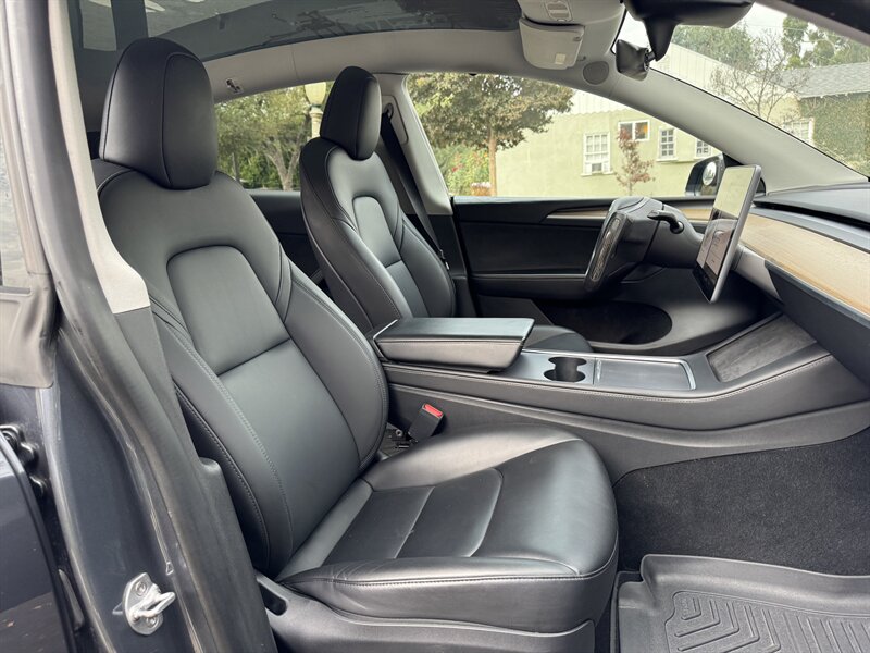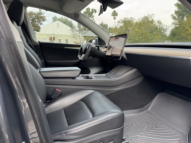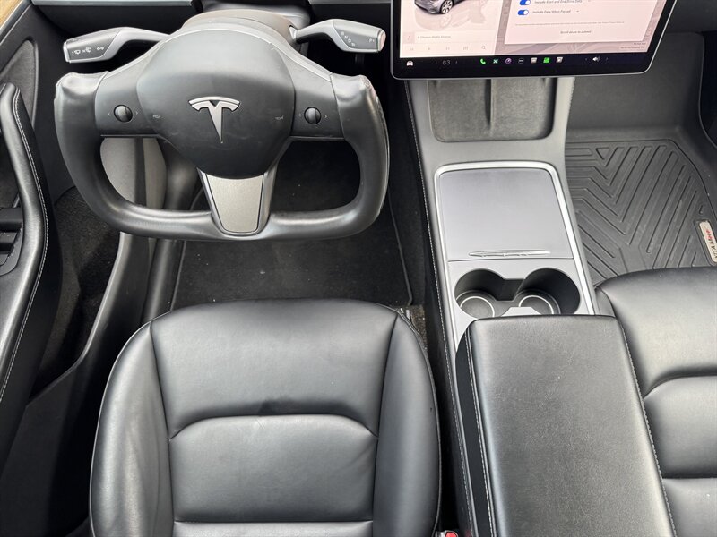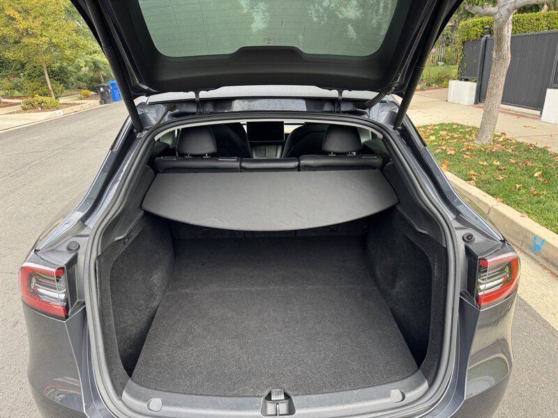 Inside, the cabin is adorned in a striking Black interior, featuring high-quality materials and a minimalist design that is synonymous with Tesla's commitment to modern aesthetics. The spacious interior comfortably accommodates five passengers, with ample cargo space for all your gear.