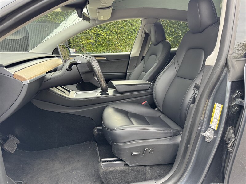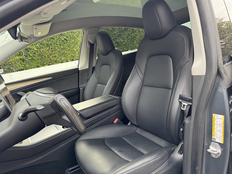 The exterior of this Model Y is finished in a sleek Midnight Silver Metallic, providing a modern and sophisticated look that stands out on the road. The aerodynamic design not only enhances its visual appeal but also contributes to its efficiency and range.